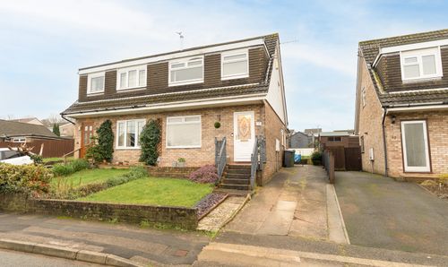 At the front of the house we have another lawn that welcomes us towards the property, nestled adjacent to the double driveway, providing convenient parking for up to two vehicles.