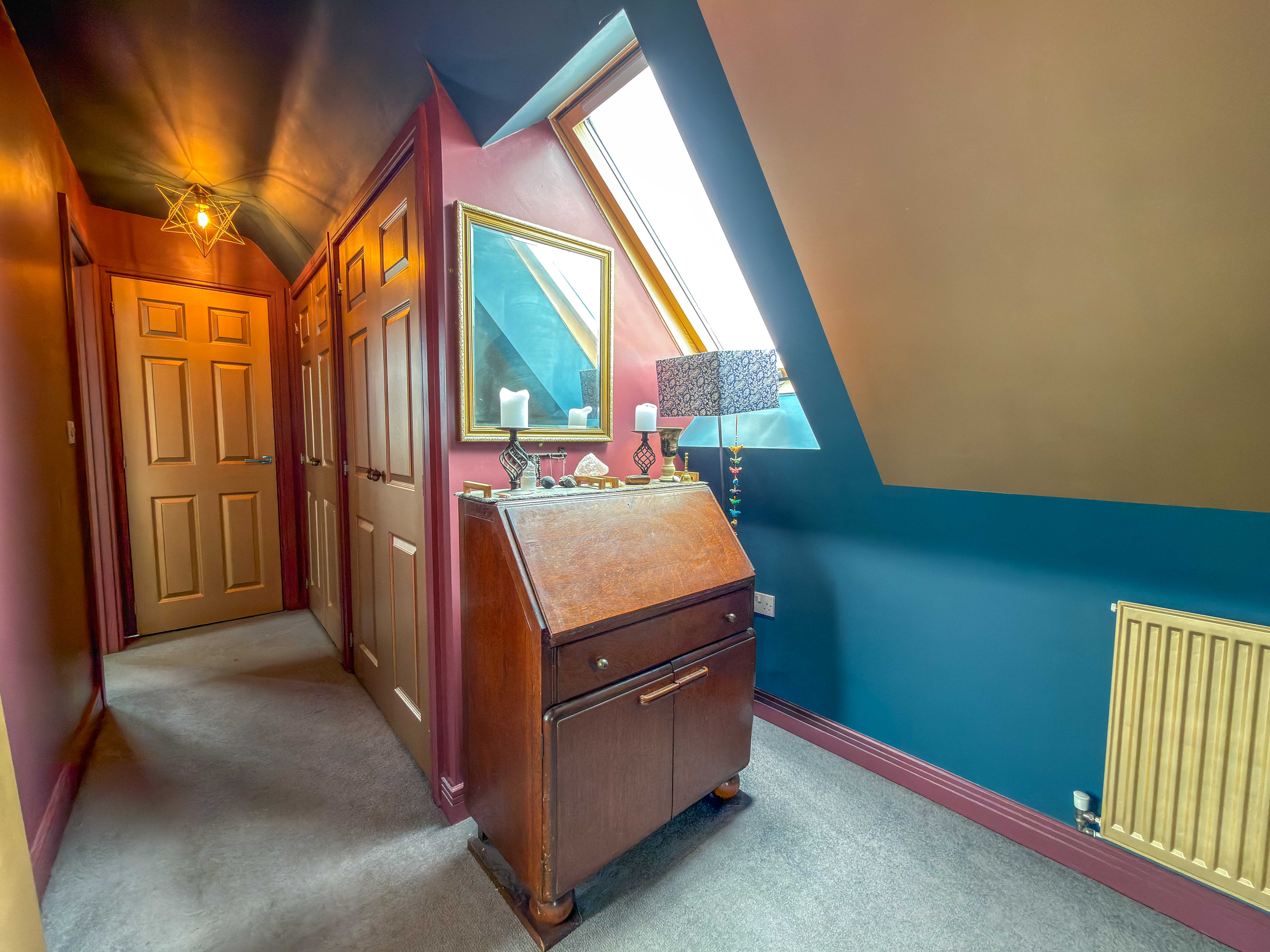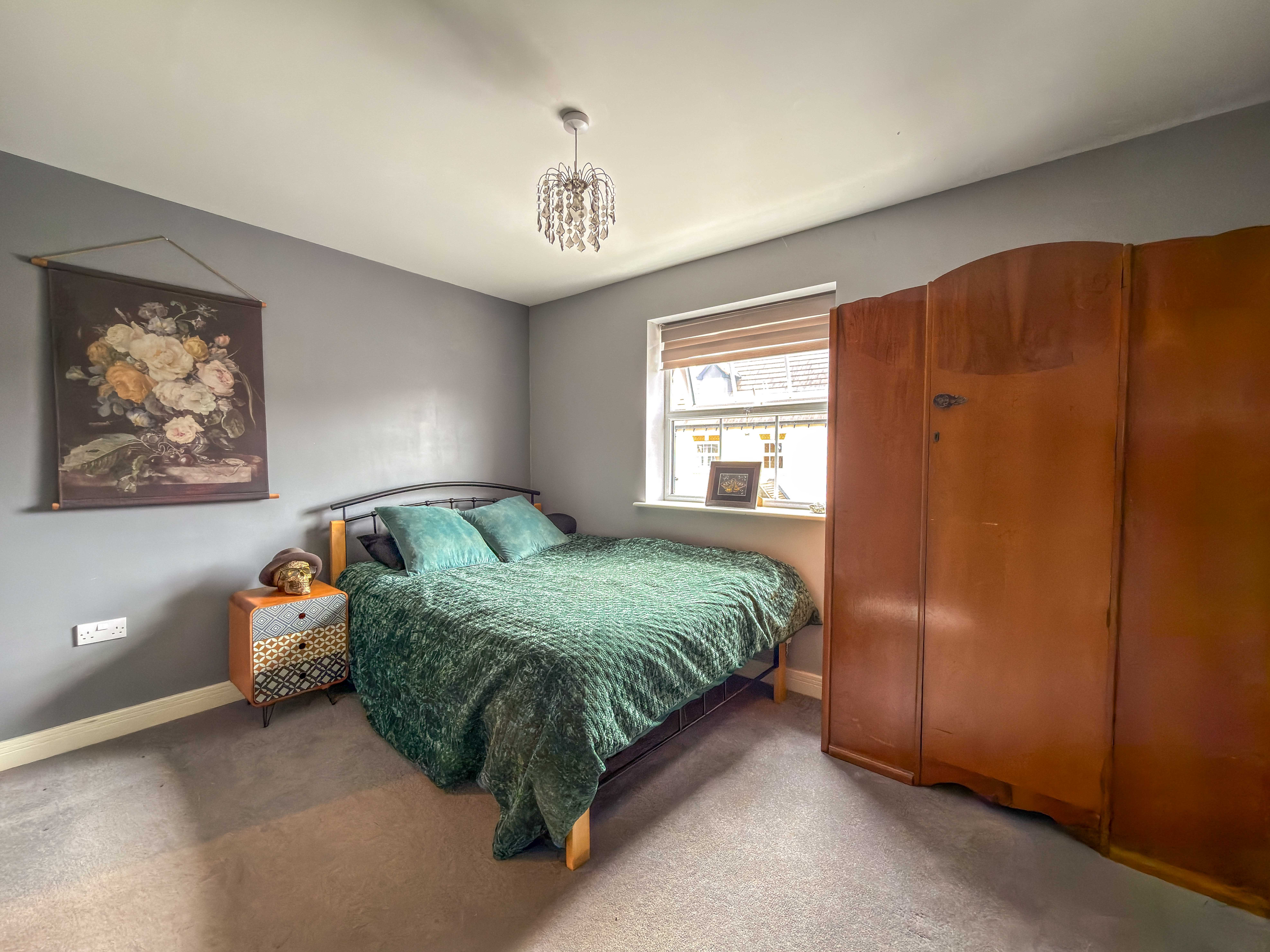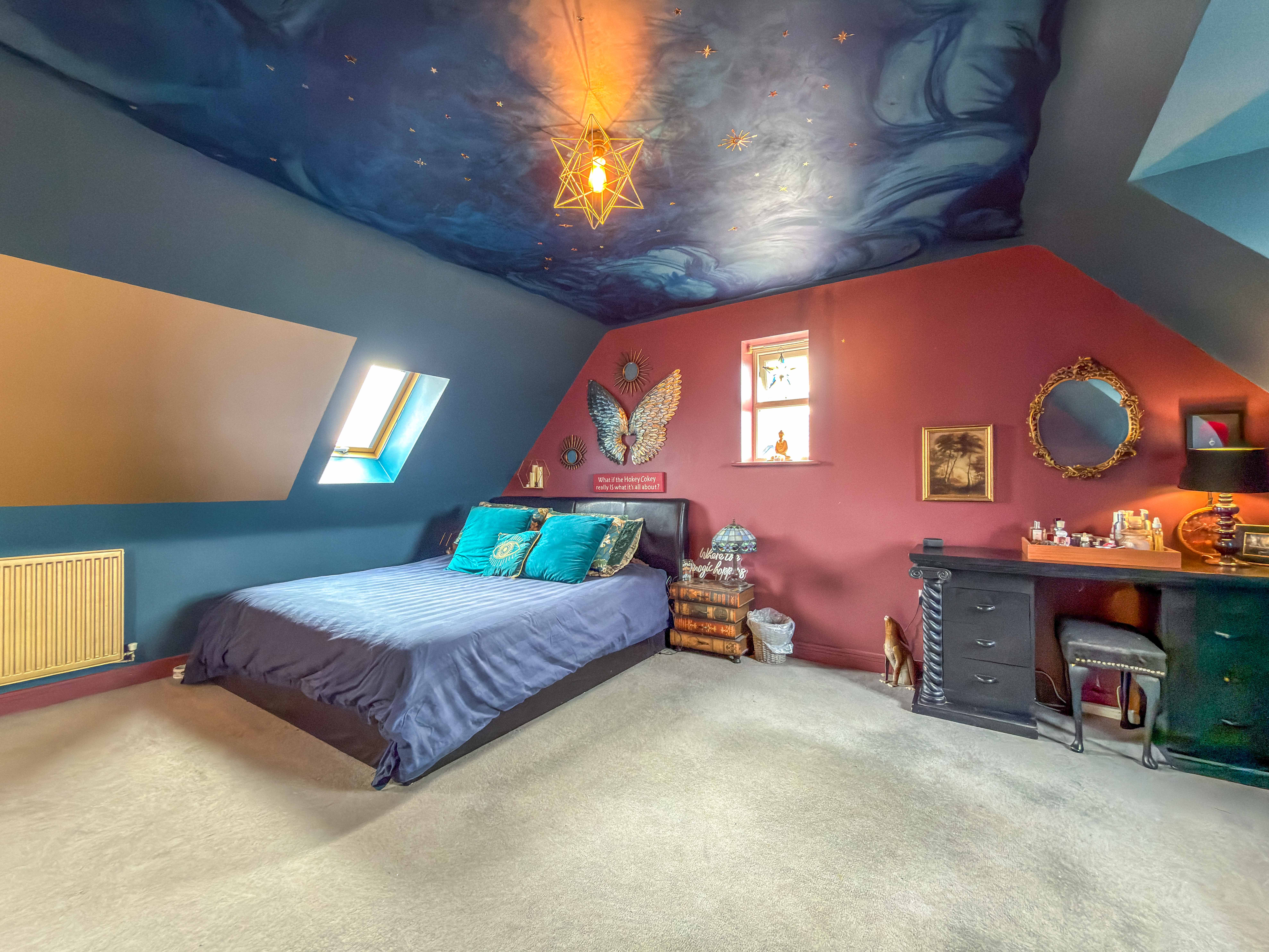 The top floor is dedicated to an impressive principal suite, creating a private and luxurious retreat. The spacious bedroom is complemented by fitted wardrobes and additional storage, along with a stylish en-suite bathroom featuring a three-piece suite and a walk-in double shower with mains-fed fittings.