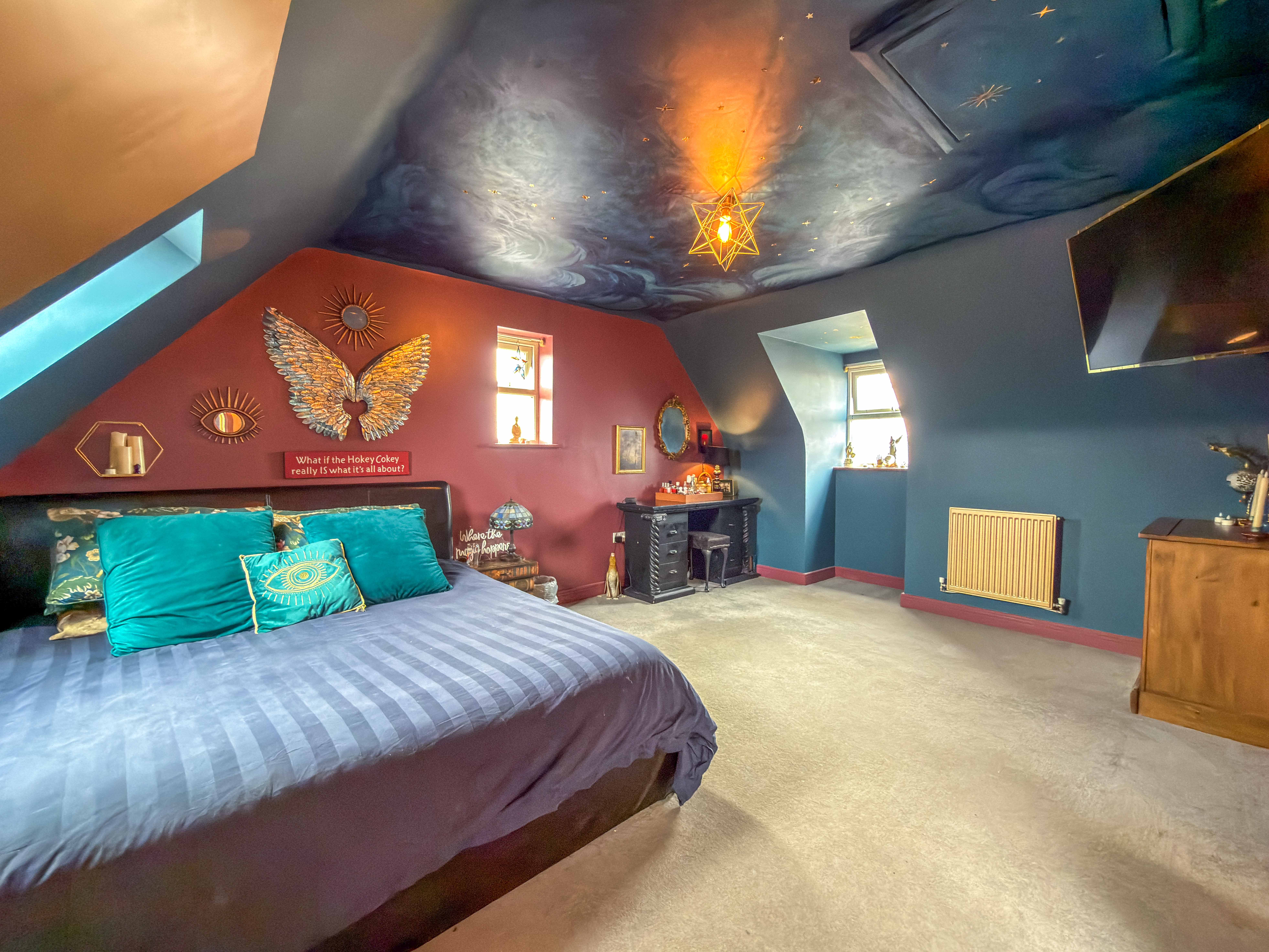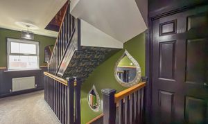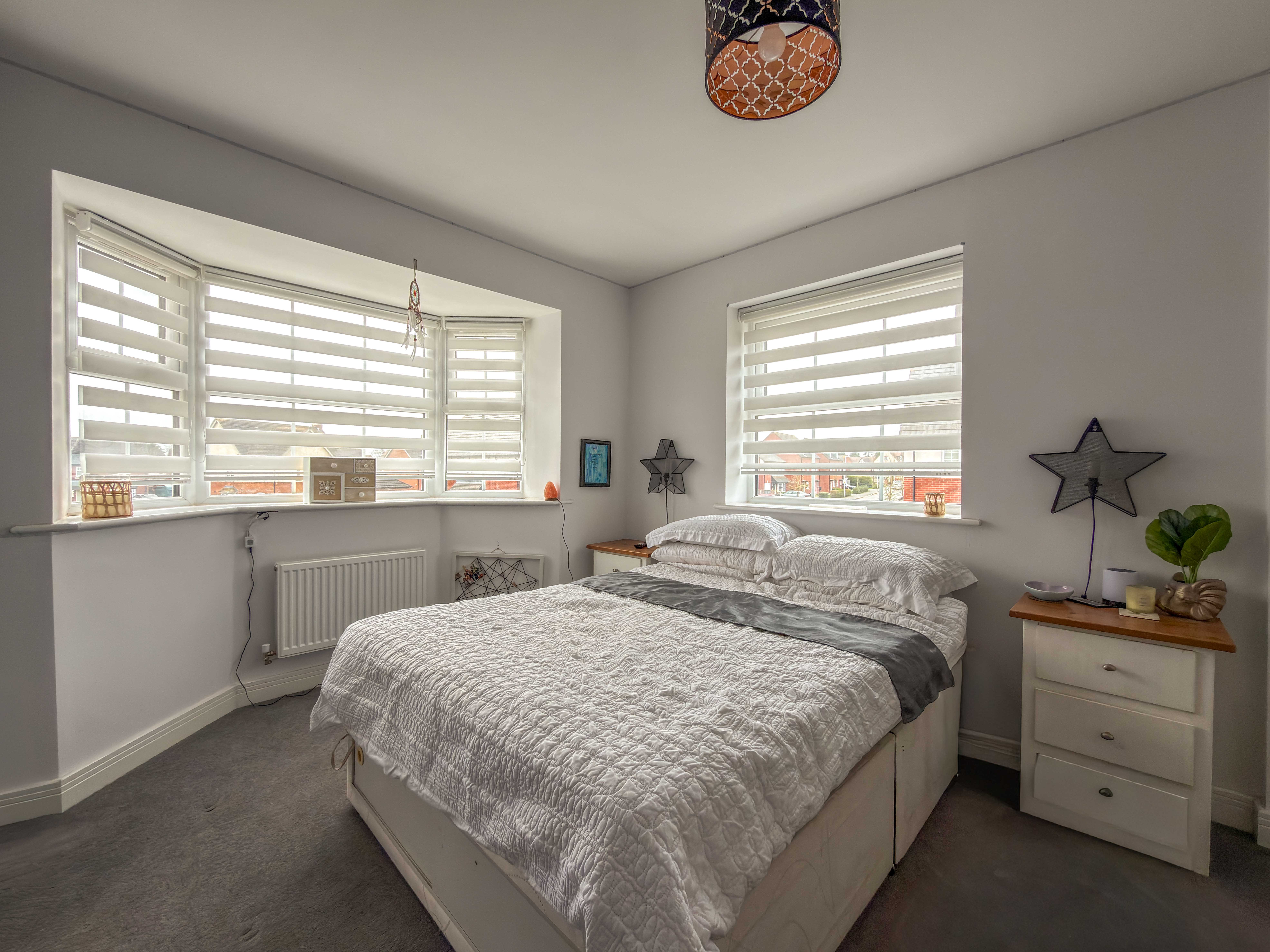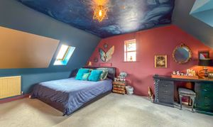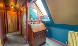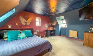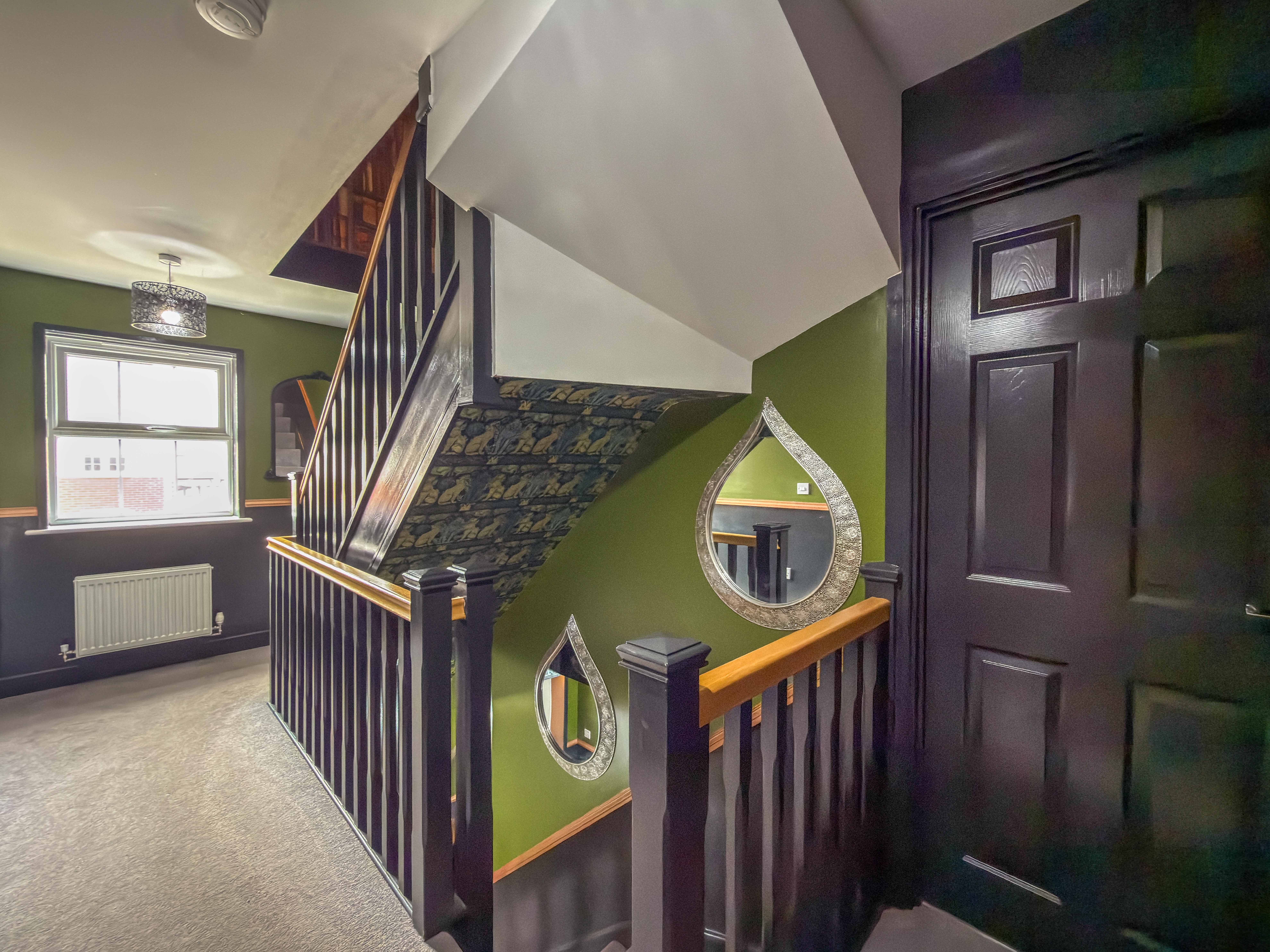 The top floor is dedicated to an impressive principal suite, creating a private and luxurious retreat. The spacious bedroom is complemented by fitted wardrobes and additional storage, along with a stylish en-suite bathroom featuring a three-piece suite and a walk-in double shower with mains-fed fittings.