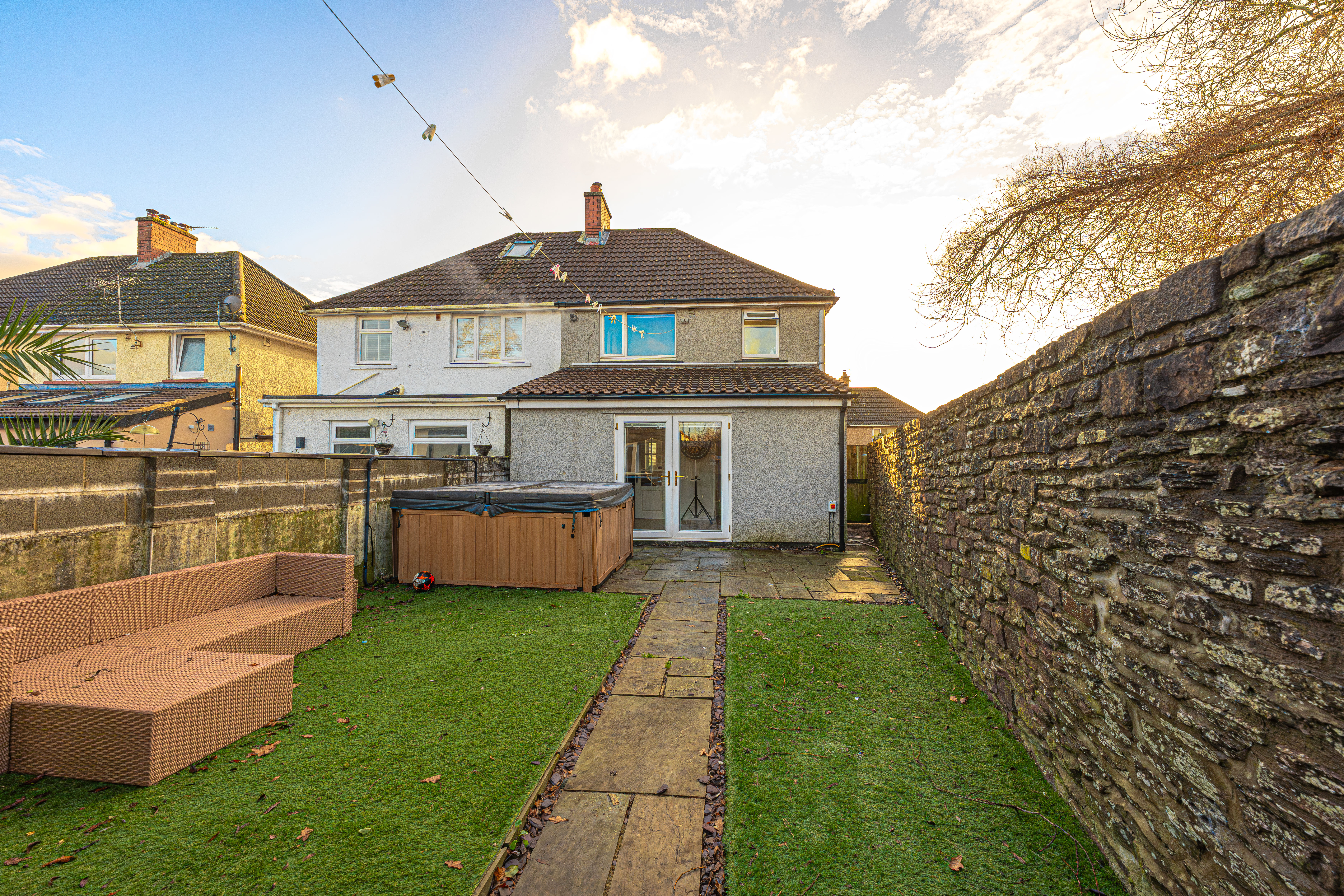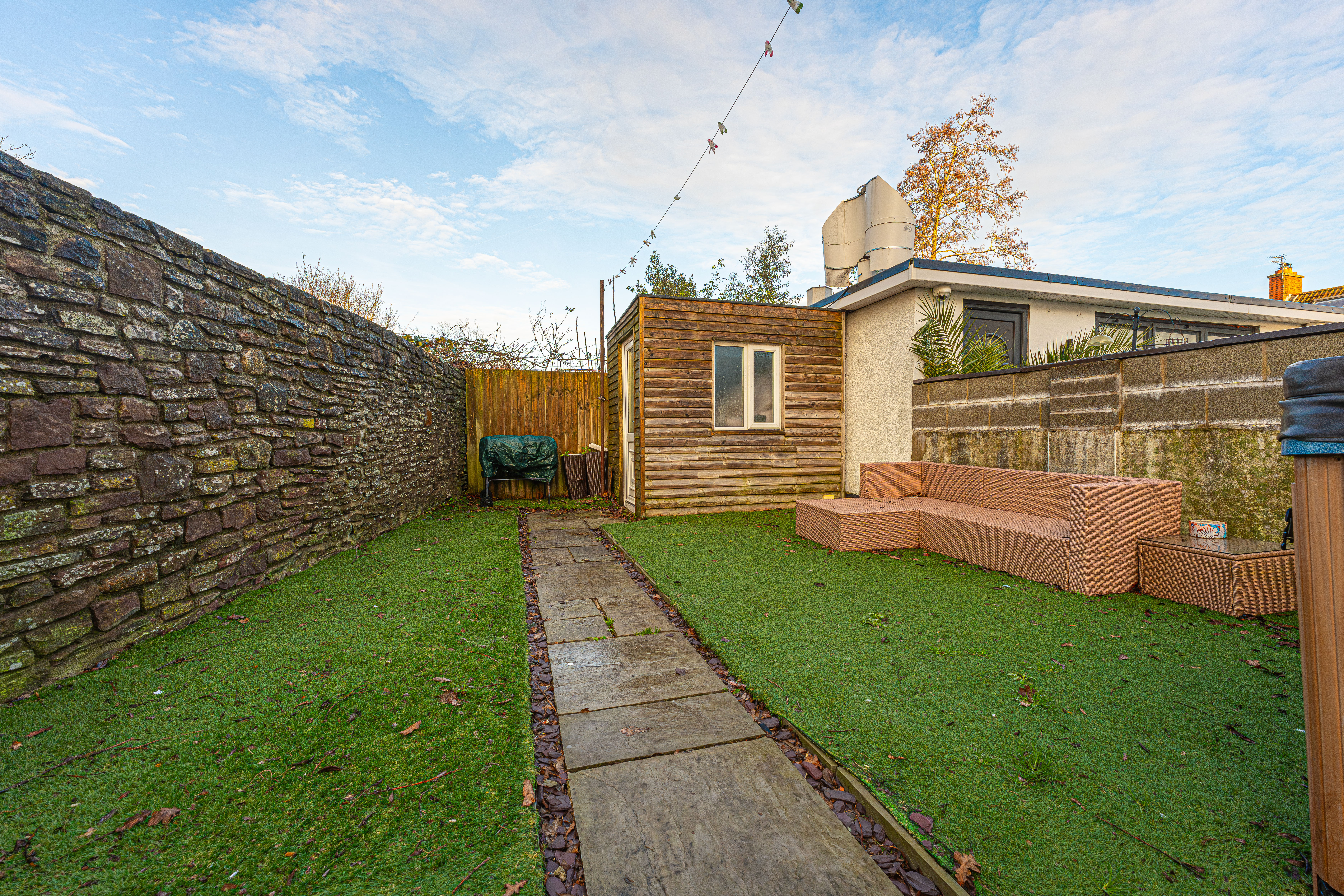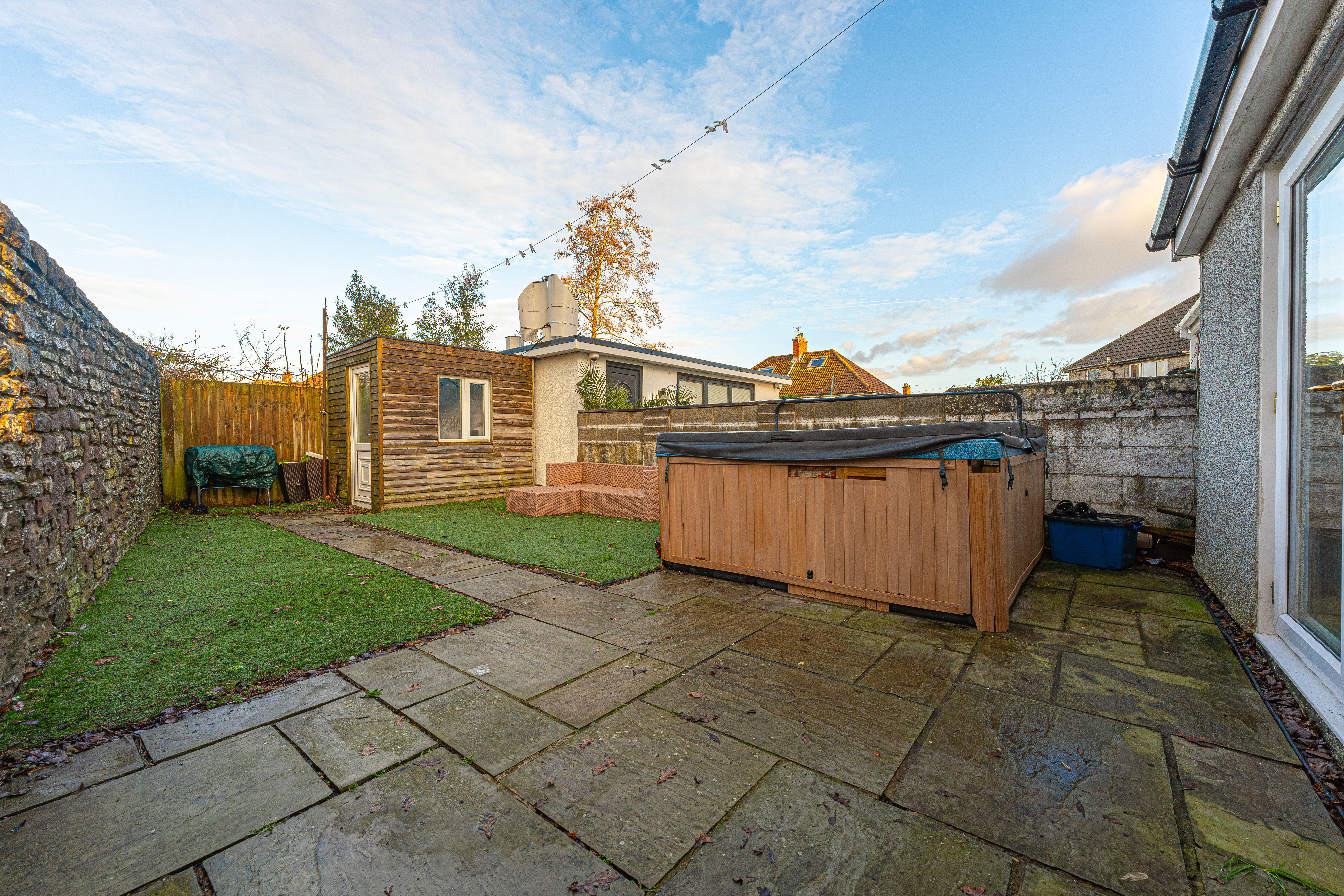 Stepping outside we have the rear garden, which is fully enclosed and consists of patio from the house with a low maintenance turf lawn beyond, offering plenty of space to welcome guests and unwind in the sunshine. The garden also benefits from a useful storage shed, which is equipped with power - allowing it to be used as a workshop, or for utilities and general storage. The garden also features a marvellous hot tub, which is sure to provide attraction and appeal for the whole family.