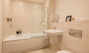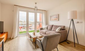 The generous double bedroom offers a tranquil retreat, complete with ample space for wardrobes and additional furnishings, while the stylish family bathroom features contemporary fixtures and a pristine finish for a touch of every-day luxury. Every detail has been considered for both comfort and practicality, ensuring the apartment remains in superb condition throughout.