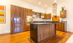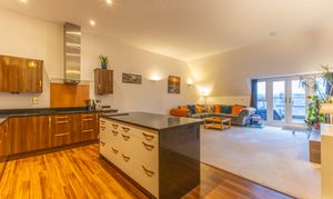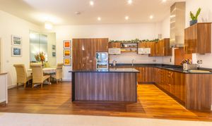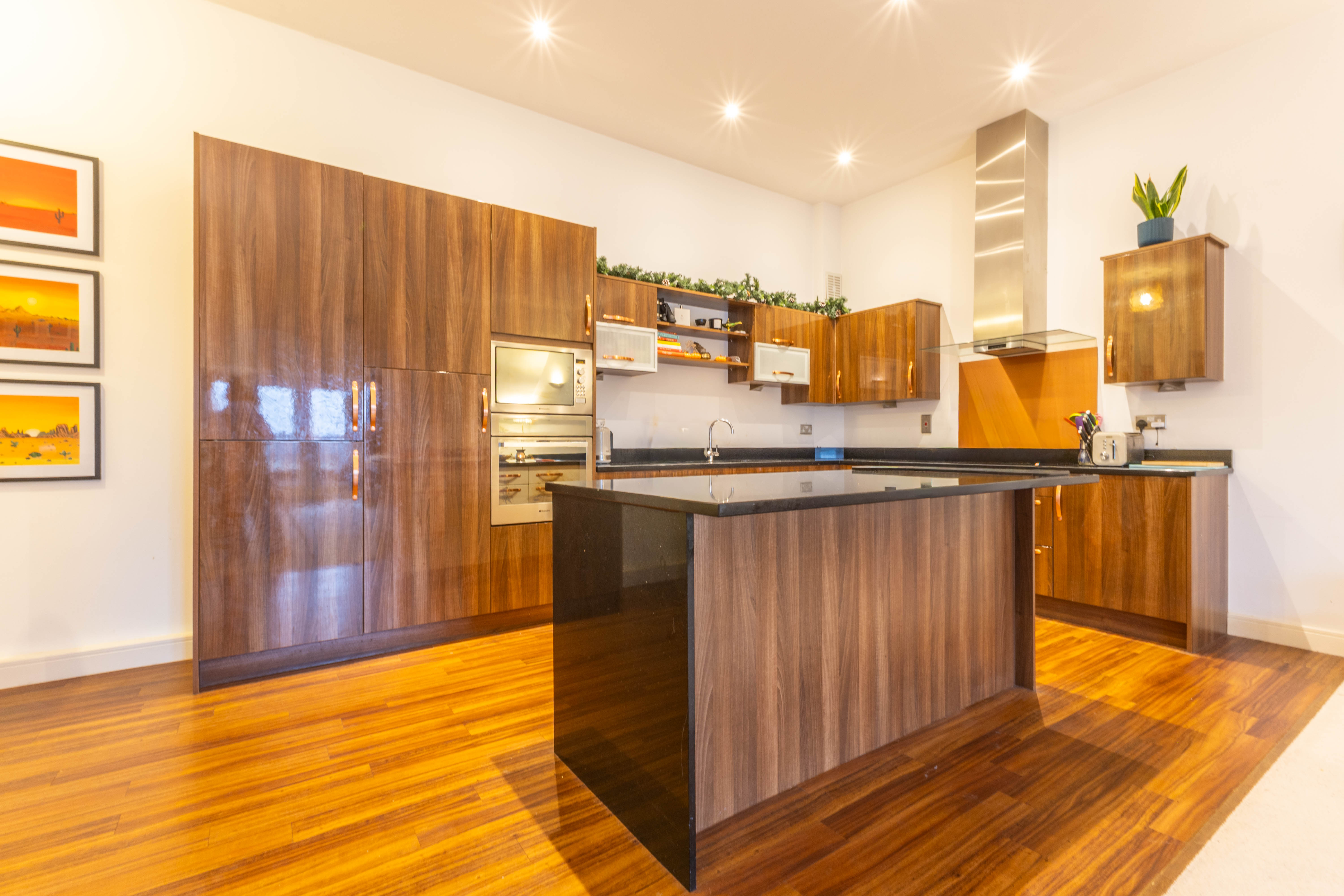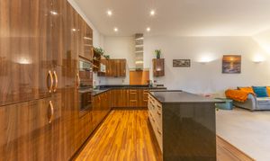 - Modern fitted kitchen with sleek finishes and integrated appliances