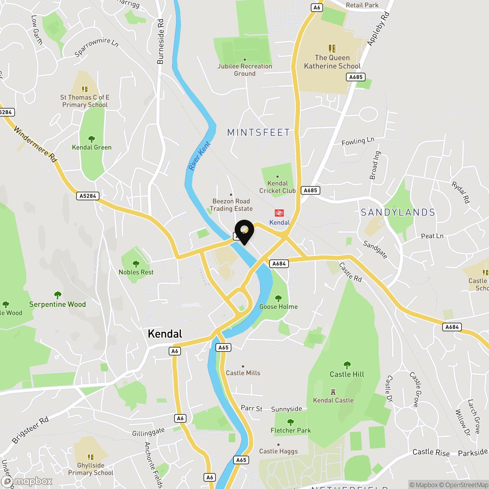 From Kendal town centre, follow the A6 northbound and continue towards Wildman Street, keeping the River Kent to your right. Cross the bridge and proceed along Wildman Street until you reach the turning for Beezon Road on your right. Follow Beezon Road (which is one-way) until you see Kentgate Place on the left hand side, where Apartment 44 can be found within the main building.
