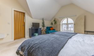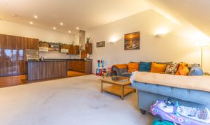 Inside, the apartment offers exceptionally generous space throughout with a bright, welcoming feel. The open plan living area provides a superb setting for both relaxation and dining, seamlessly connecting to the modern fitted kitchen with its sleek finishes and integrated appliances. There are two spacious double bedrooms, including a main bedroom that benefits from a walk in wardrobe and a contemporary en suite shower room. A versatile additional room provides an ideal office, study, or snug. The property is completed by a stylish modern bathroom and a generous hallway that enhances the sense of space.