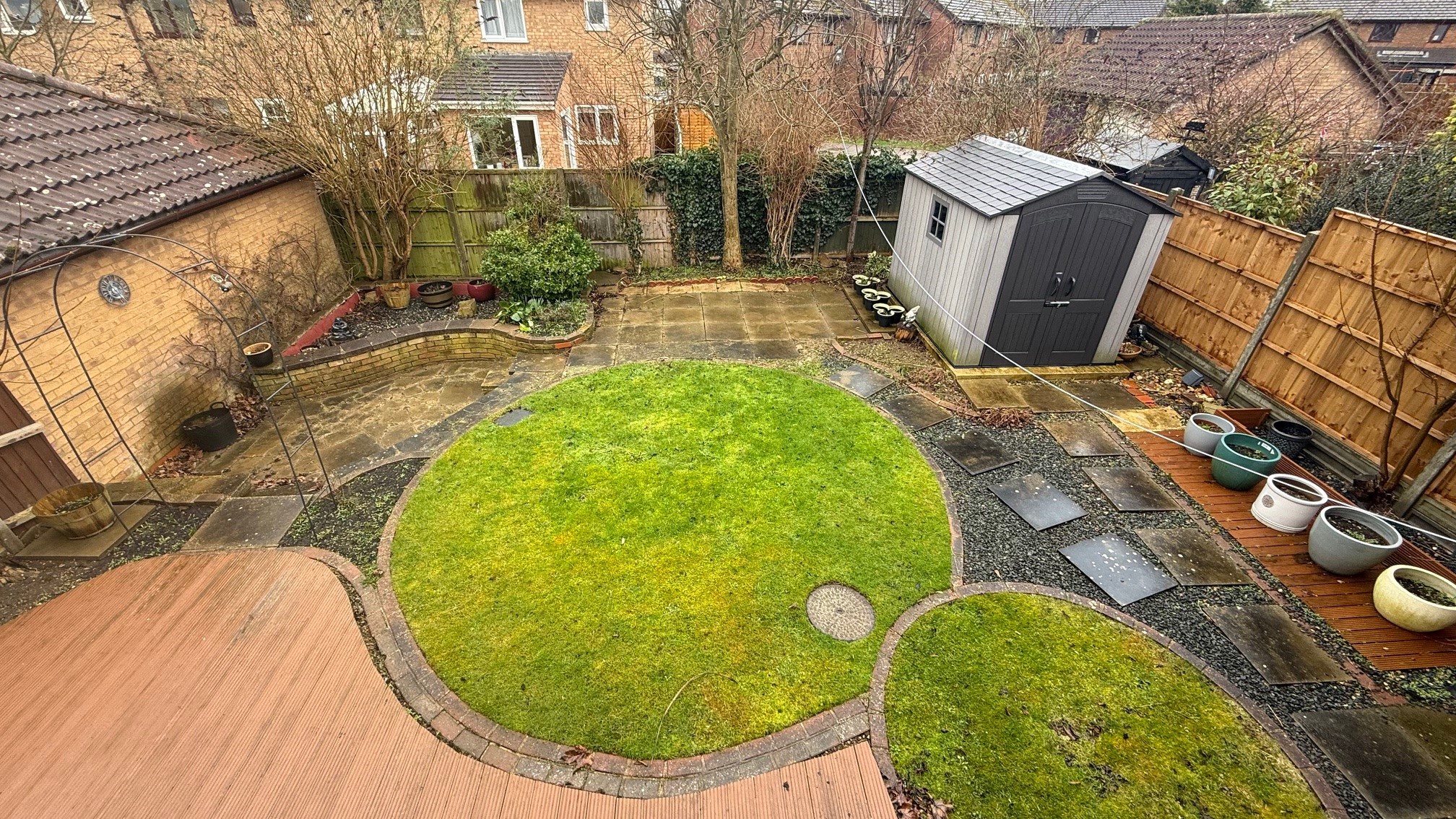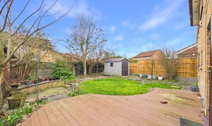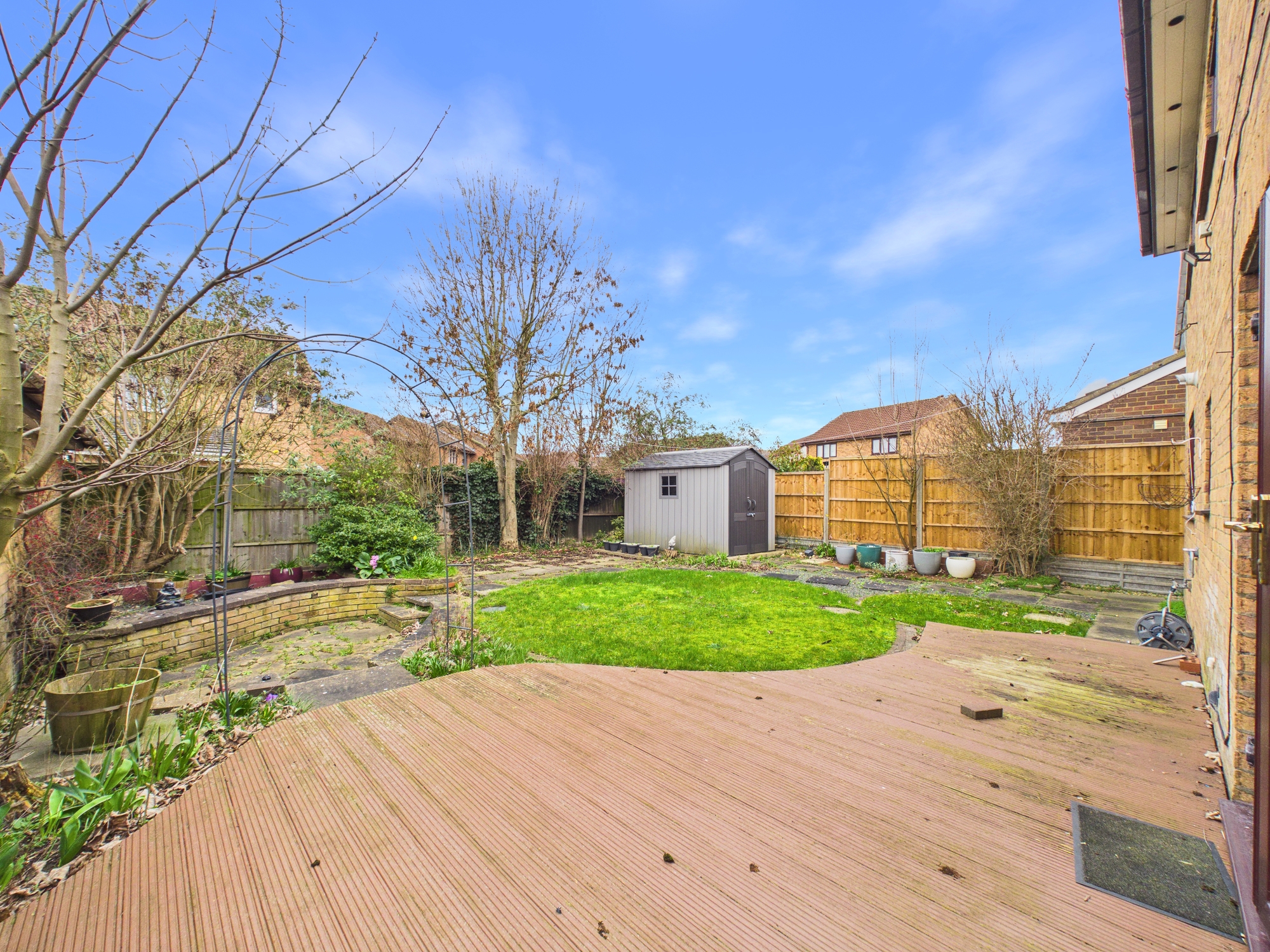 To front of the property is driveway parking for two vehicles. Side gated access leads to the landscaped rear garden which has a decked, patio and lawn areas as well as shrub and flower borders.