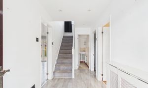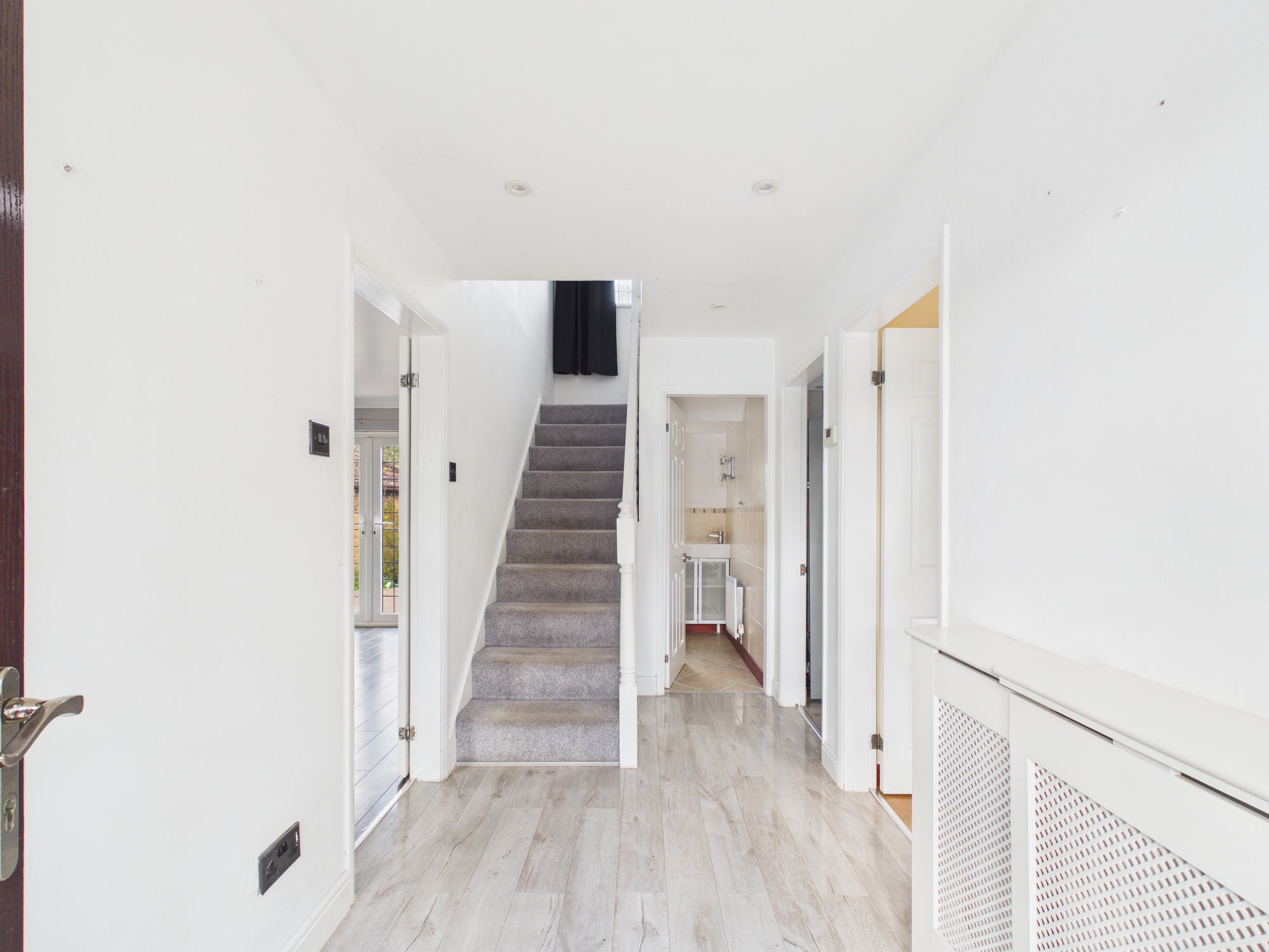A welcoming entrance hall with space for coats, shoes and stairs rising to the first floor.