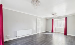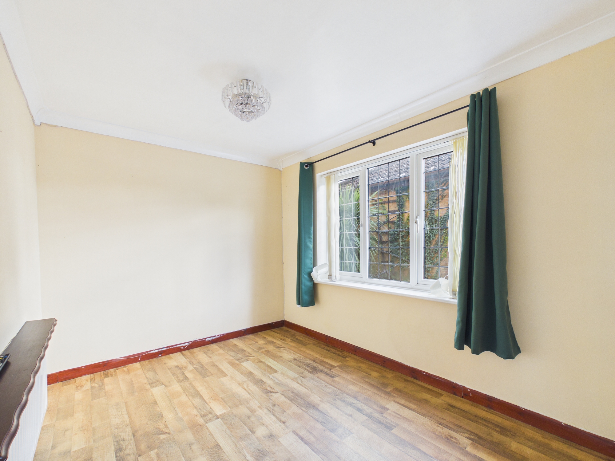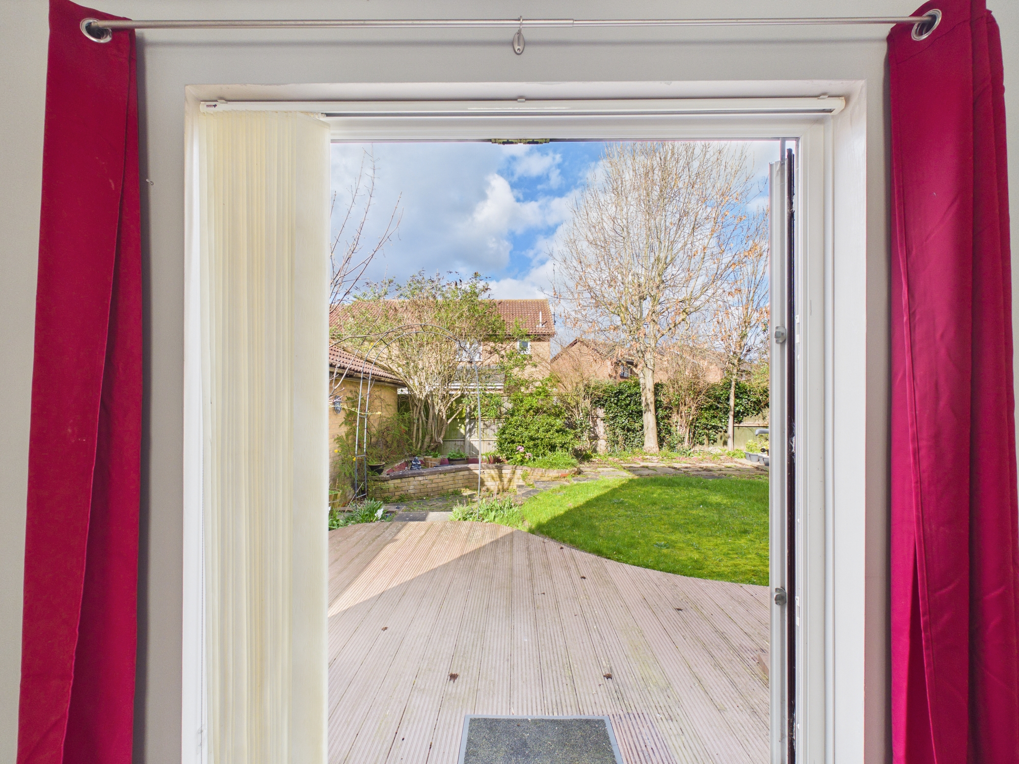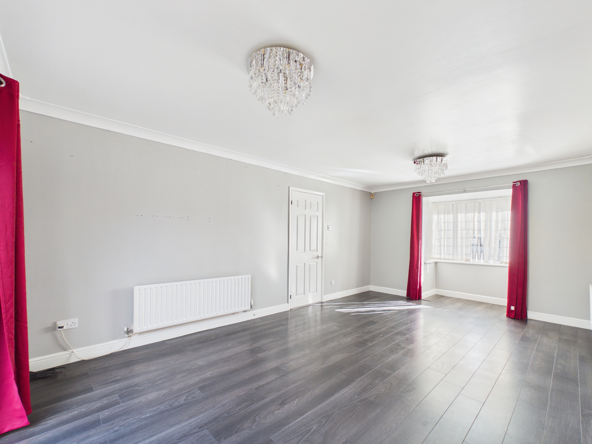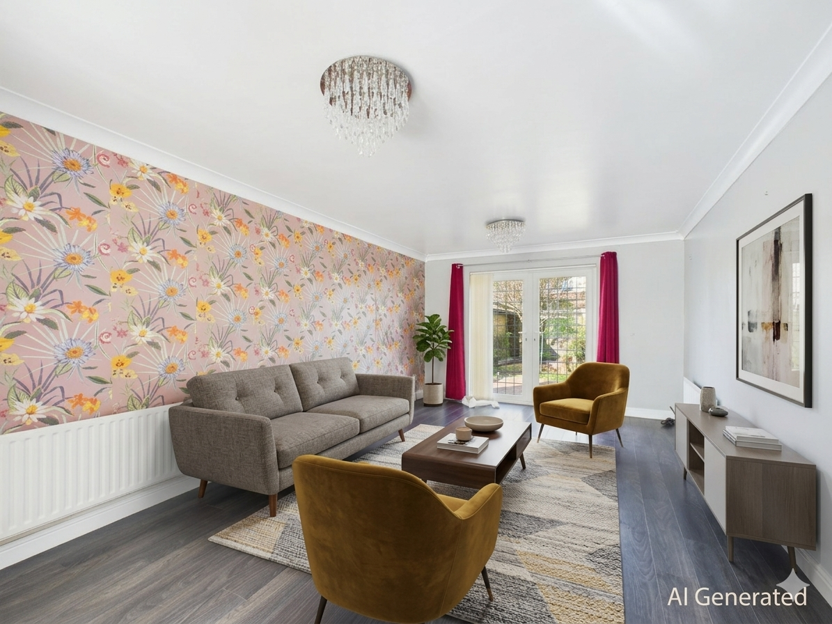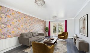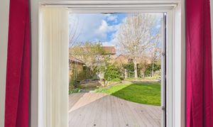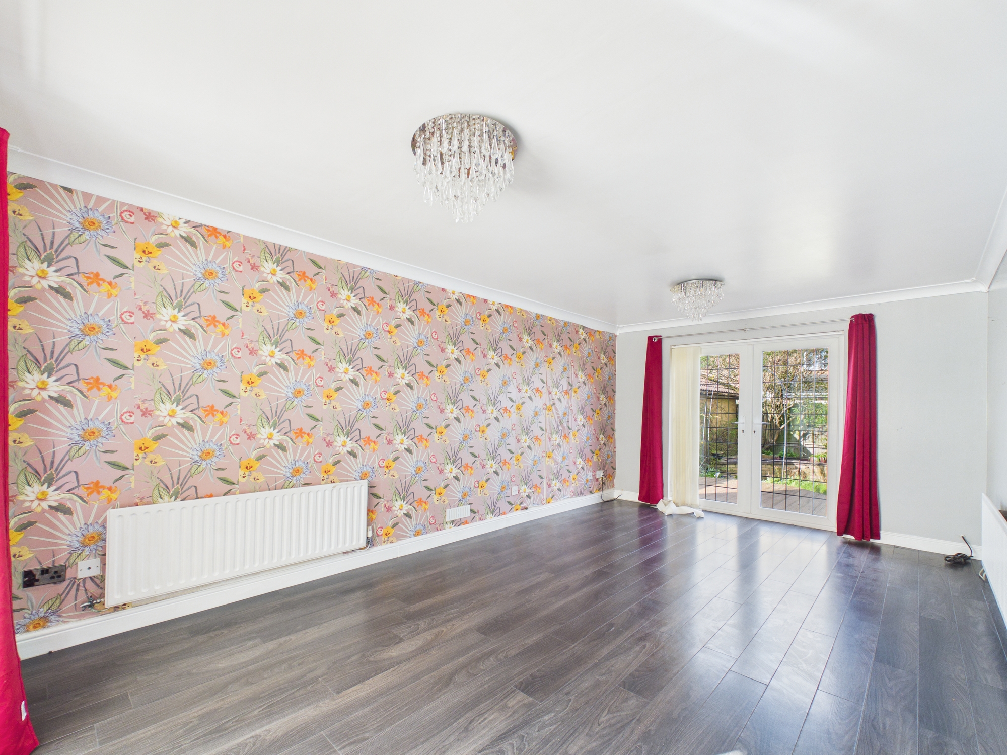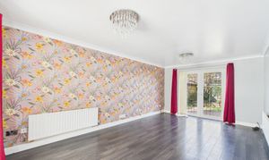 A spacious living room with a window to the front and patio doors into the rear garden.