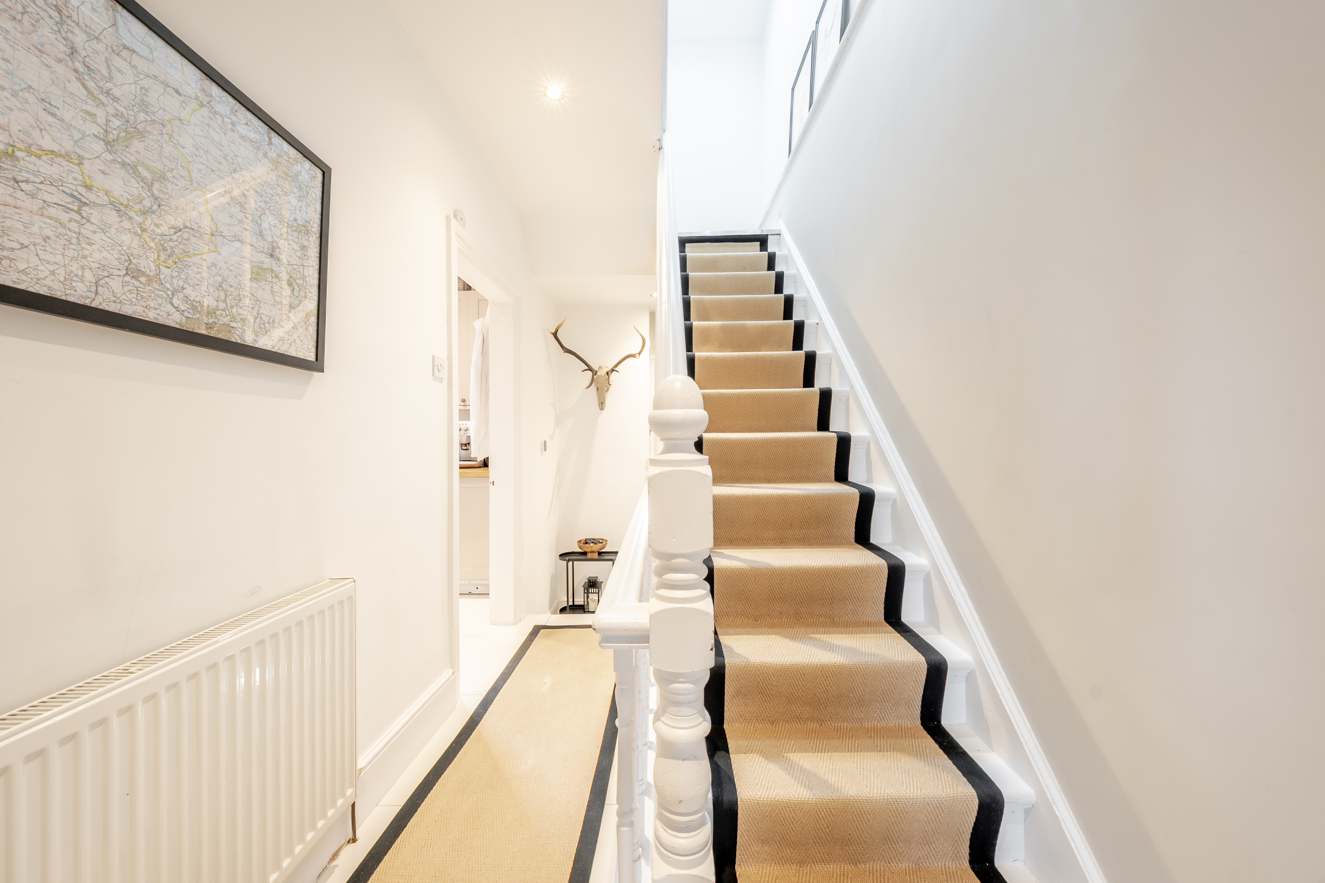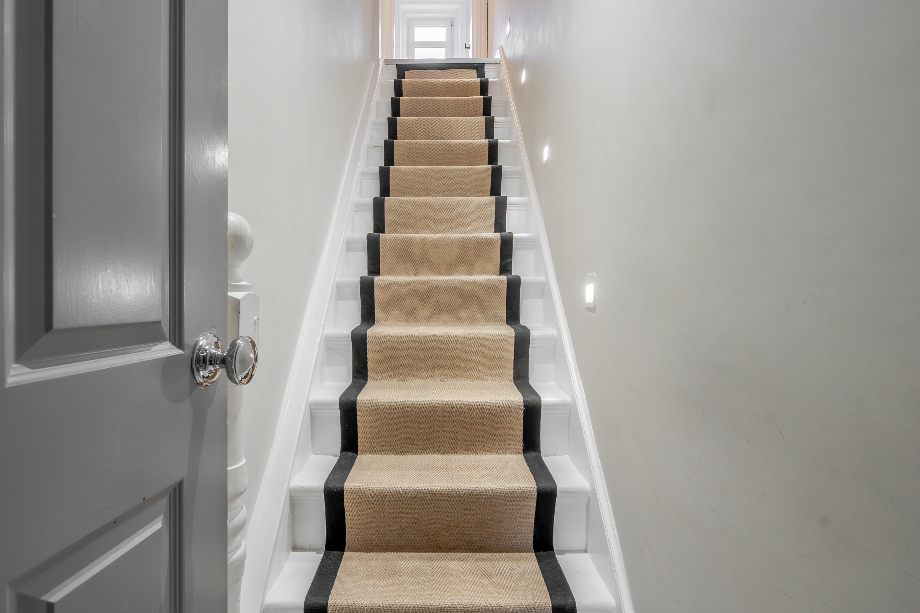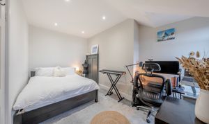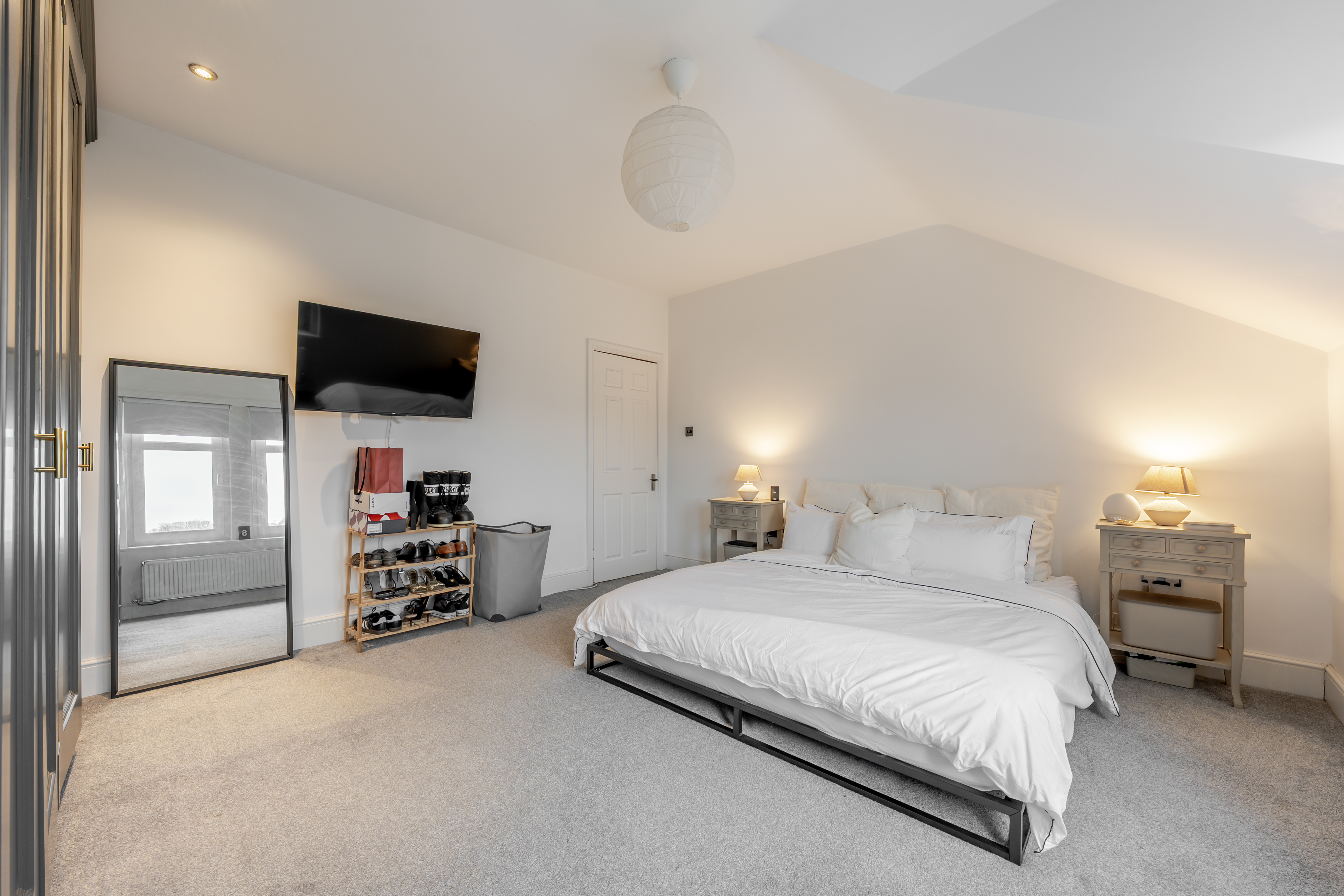 The upper level comprises two generously sized double bedrooms, both benefiting from built-in ceiling spotlights, creating bright and comfortable spaces.