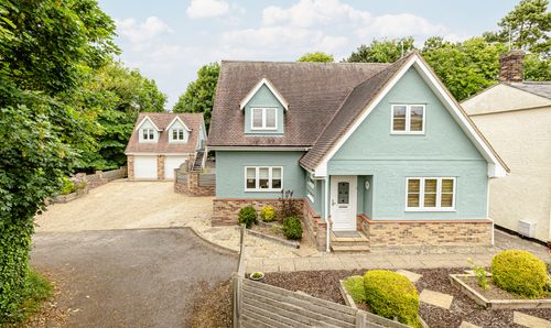 The landscaped rear garden is a standout, offering mature planting, a lawn, and defined seating areas, all framed by countryside views.