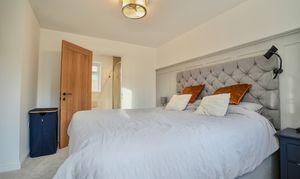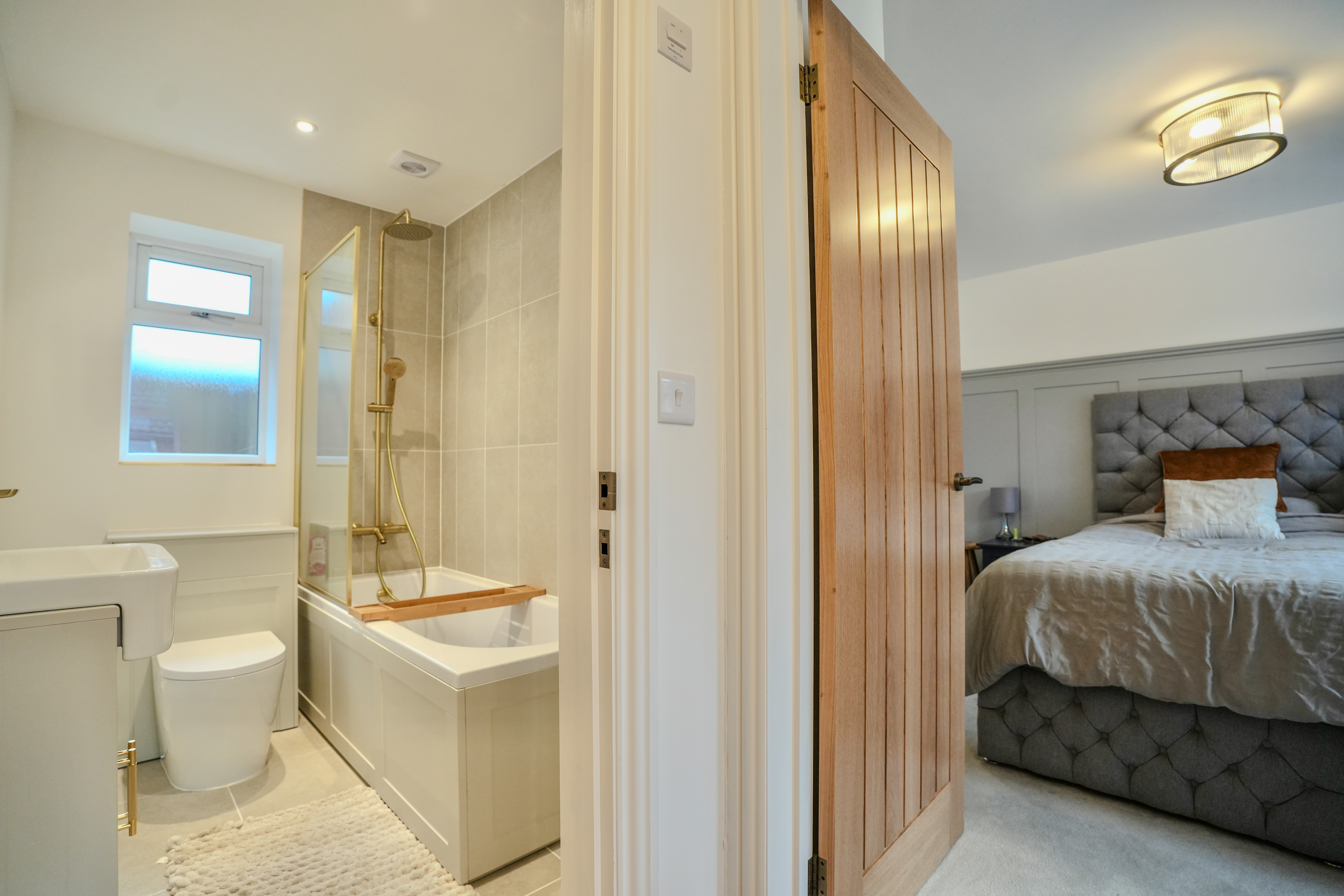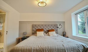 uPVC double glazed window to the side aspect, carpeted flooring, wall mounted radiator, feature panelling to one wall and door to the en-suite shower room.
