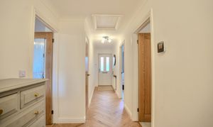 uPVC part double glazed entrance door, wood effect flooring, wall mounted radiator, loft access hatch, two built-in cupboards, doors to the lounge/diner, bathroom, bedrooms 1, 2 and 3.