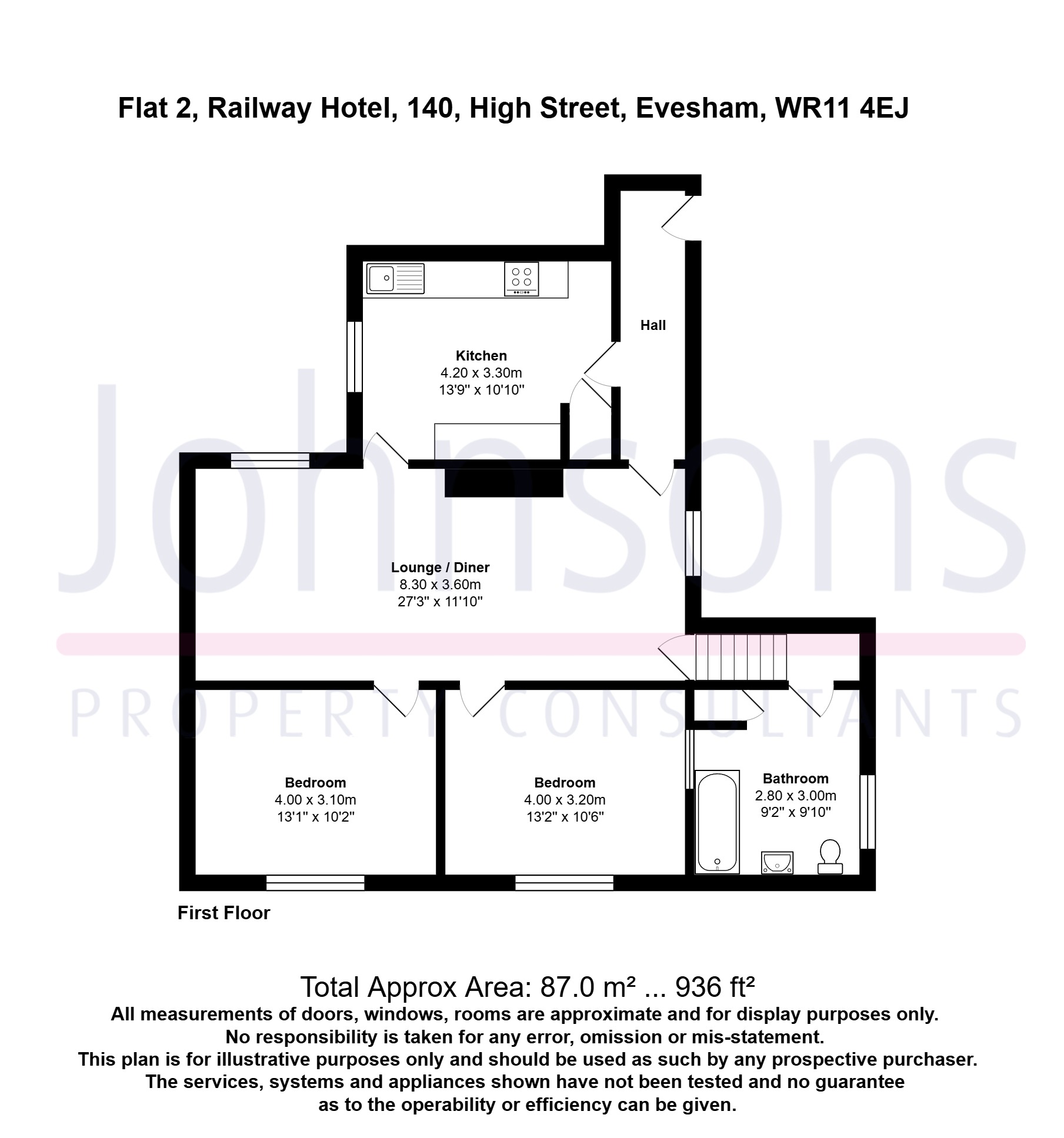 This first floor, two-bedroom flat is ideally located within a short walk of Evesham Town Centre, Evesham Train Station (with direct service to London Paddington), retail parks, and is a short drive from the A46.