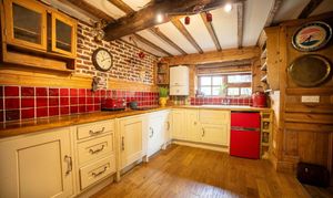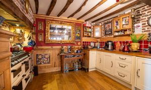 The kitchen at the rear is homely and welcoming, combining the best of old and new. There’s plenty of space for a dining table or perhaps a kitchen island.