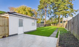 - Good-sized rear garden with porcelain tiled patio seating terrace