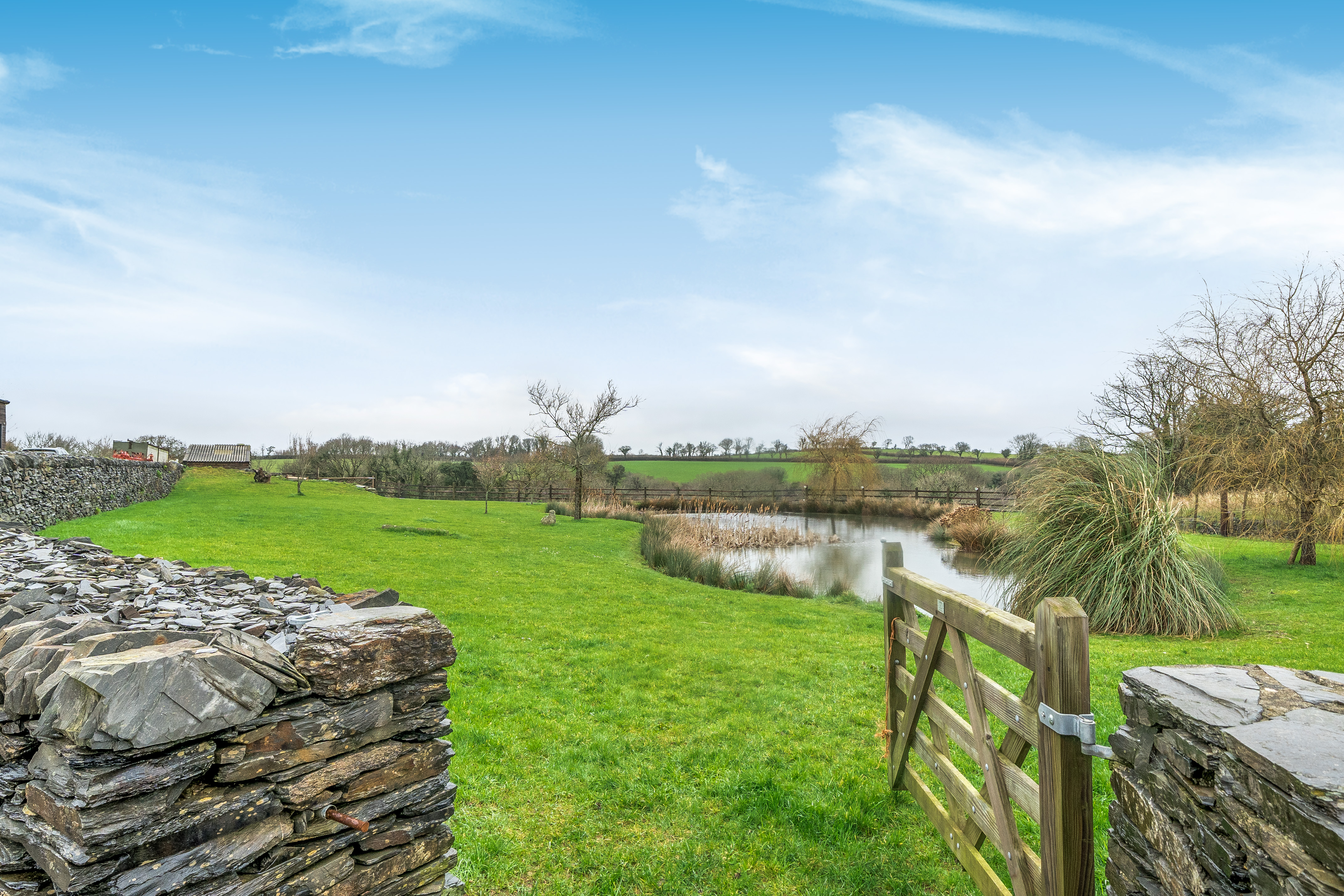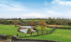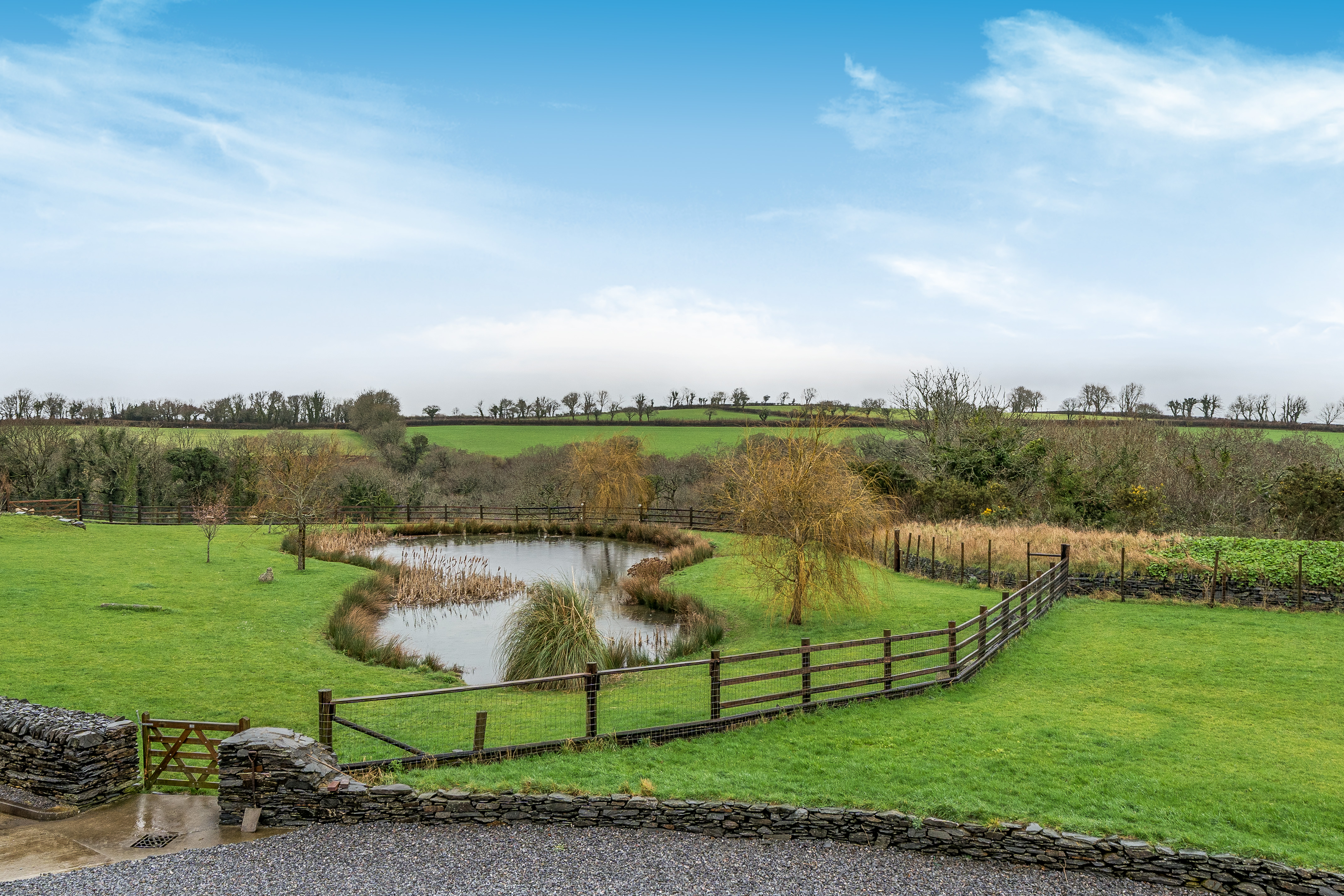 The courtyard and yard offer ample parking for numerous vehicles and provide direct access to the extensive agricultural barn. To the front of the property, a formal lawn features a figure-of-eight pond, which attracts a variety of wildlife, reinforcing the feeling of tranquillity and seclusion. The surrounding paddocks offer plenty of space for horses or other livestock, making the estate highly versatile for a range of country pursuits.