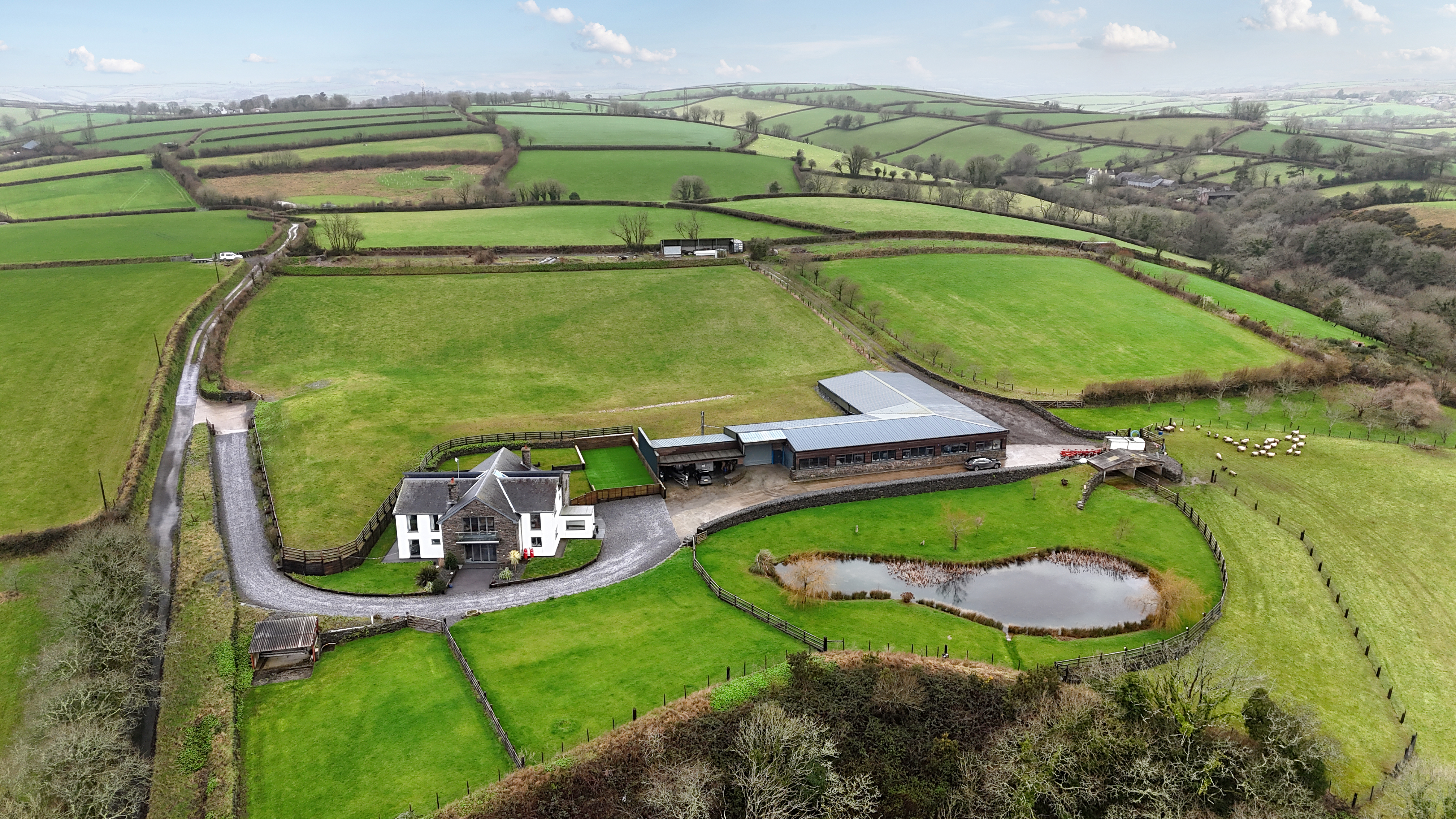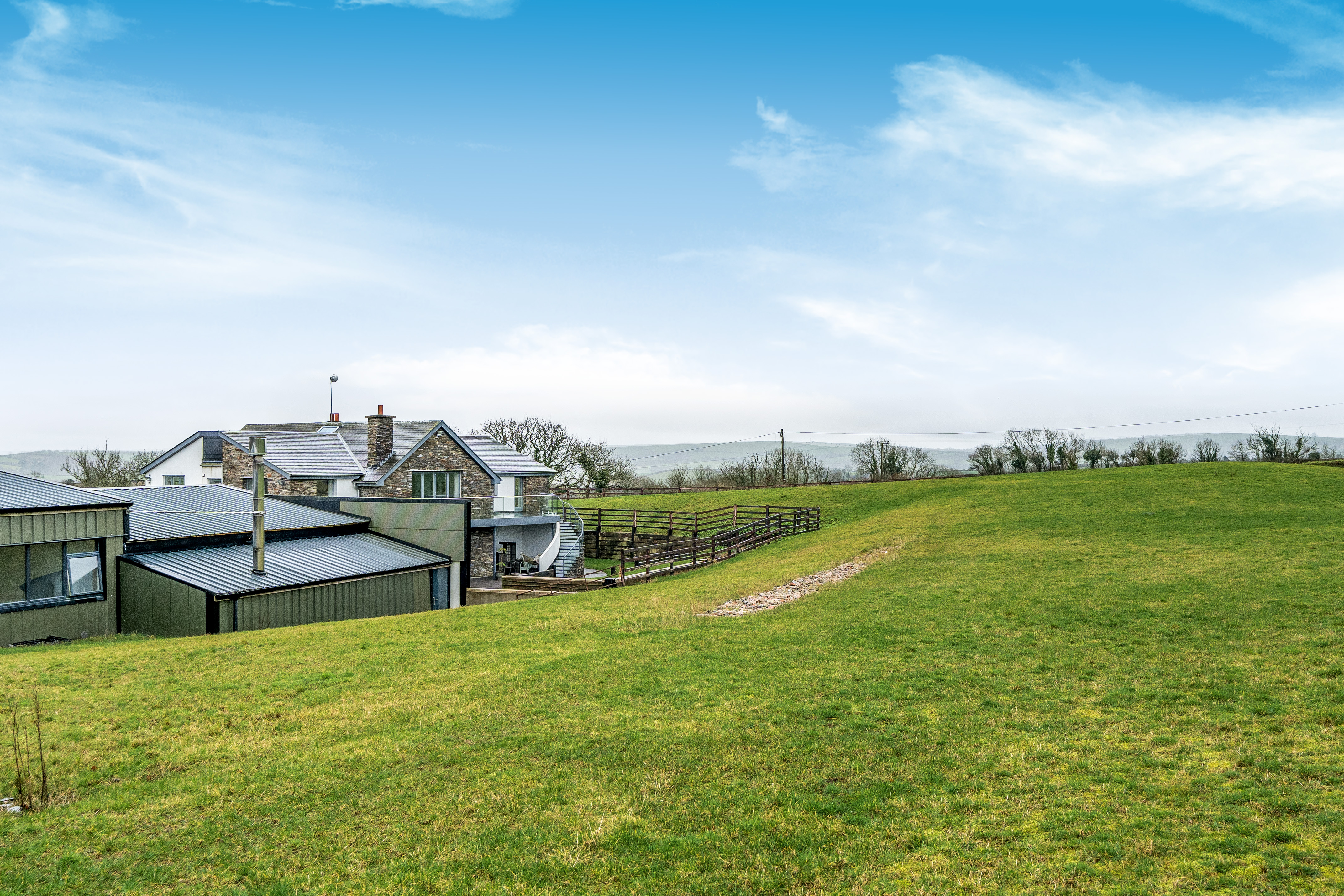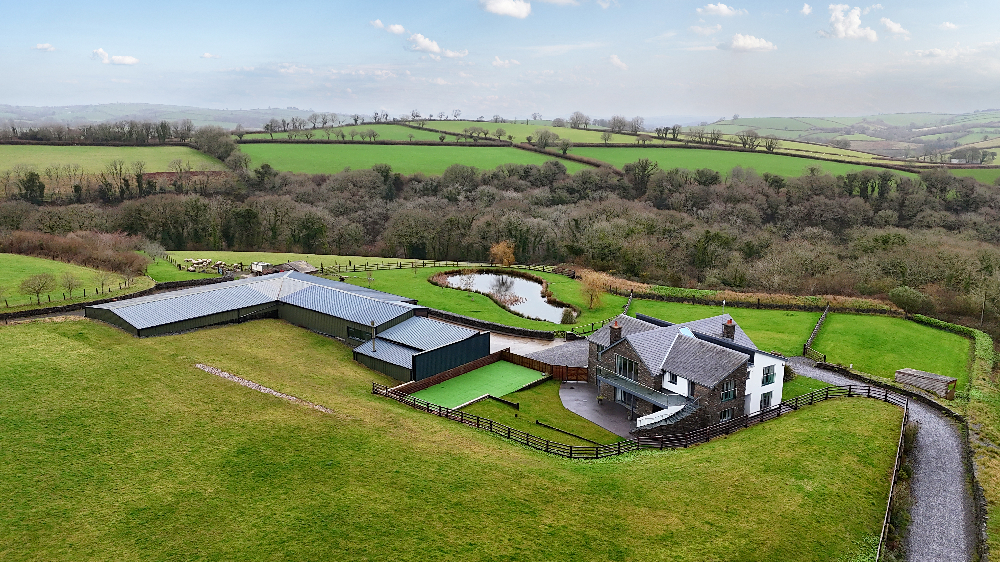 Set within approximately 9.2 acres of private gardens, paddocks and a tranquil pond, Little Larcombe Farm is an energy efficient architecturally designed, substantial stone-clad farmhouse that successfully blends the timeless character of a traditional Devon farmstead with a contemporary, industrial-inspired aesthetic.