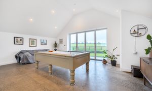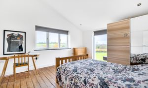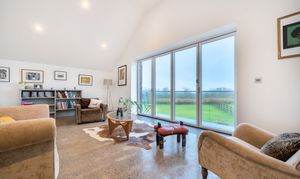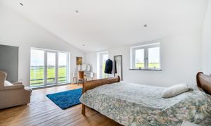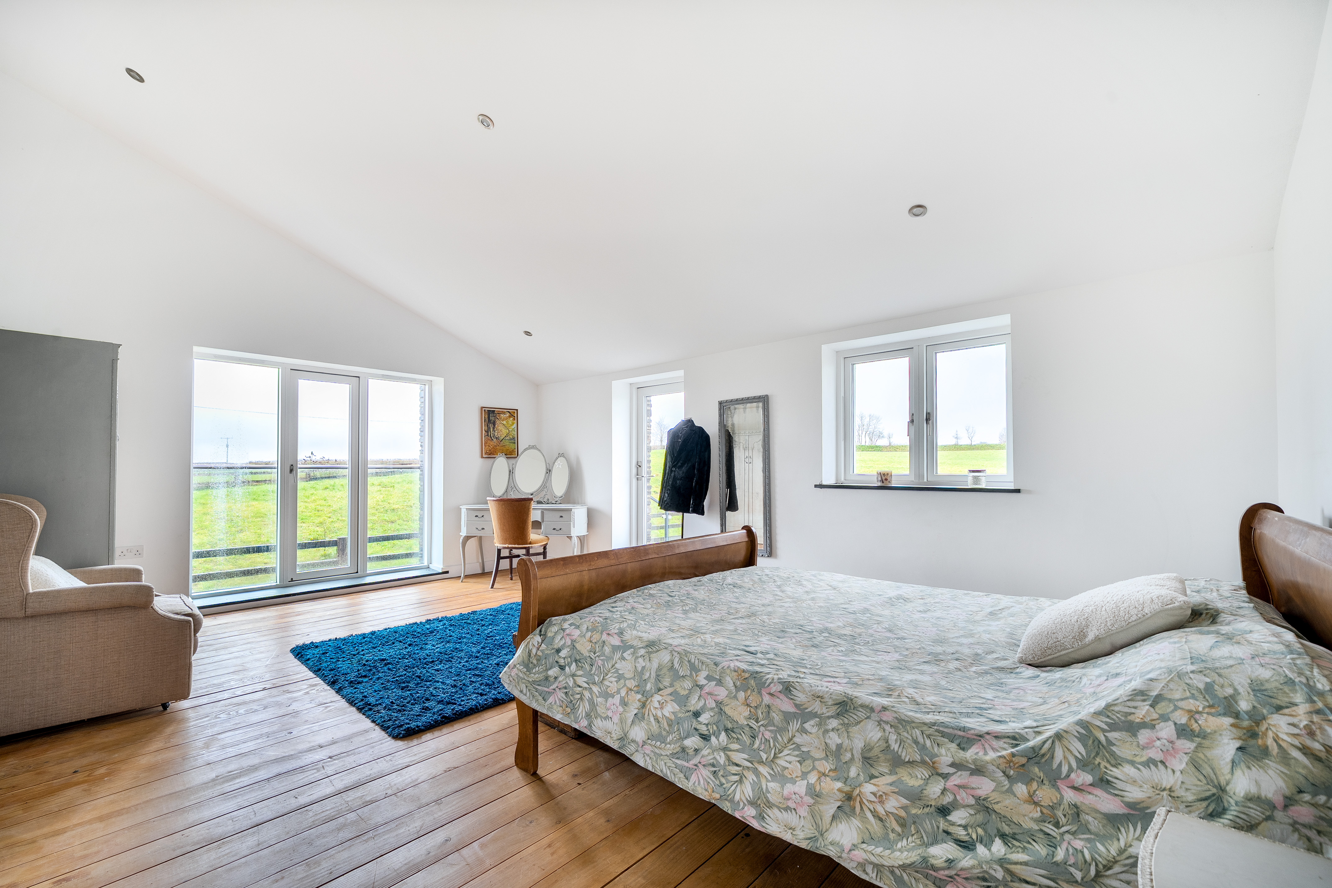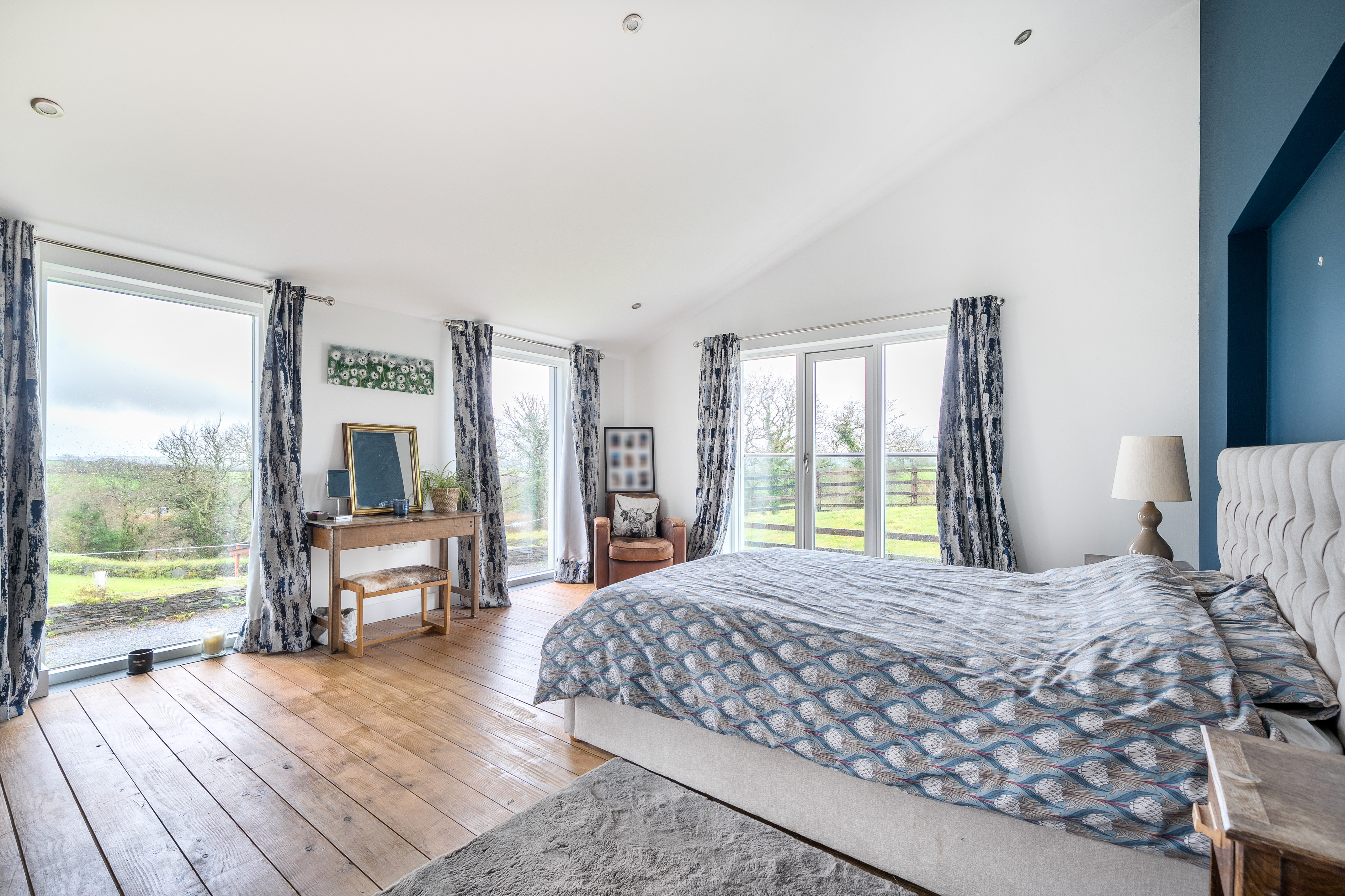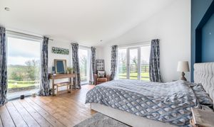 The main house offers five bedrooms and beautifully proportioned accommodation, flooded with natural light throughout. An abundance of thoughtfully placed windows and doors ensures that almost every room enjoys uninterrupted views across the surrounding grounds, creating a seamless connection between the interior spaces and the landscape beyond.