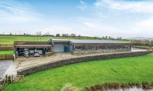 Complementing the main residence are substantial outbuildings extending to approximately 8,000 sq ft, offering exceptional scope for a variety of uses—whether extensive storage, workshops, business use (subject to consent), or conversion to an equestrian arena. The land itself is well balanced, with formal gardens giving way to open paddocks and water features, all set within a peaceful rural setting.