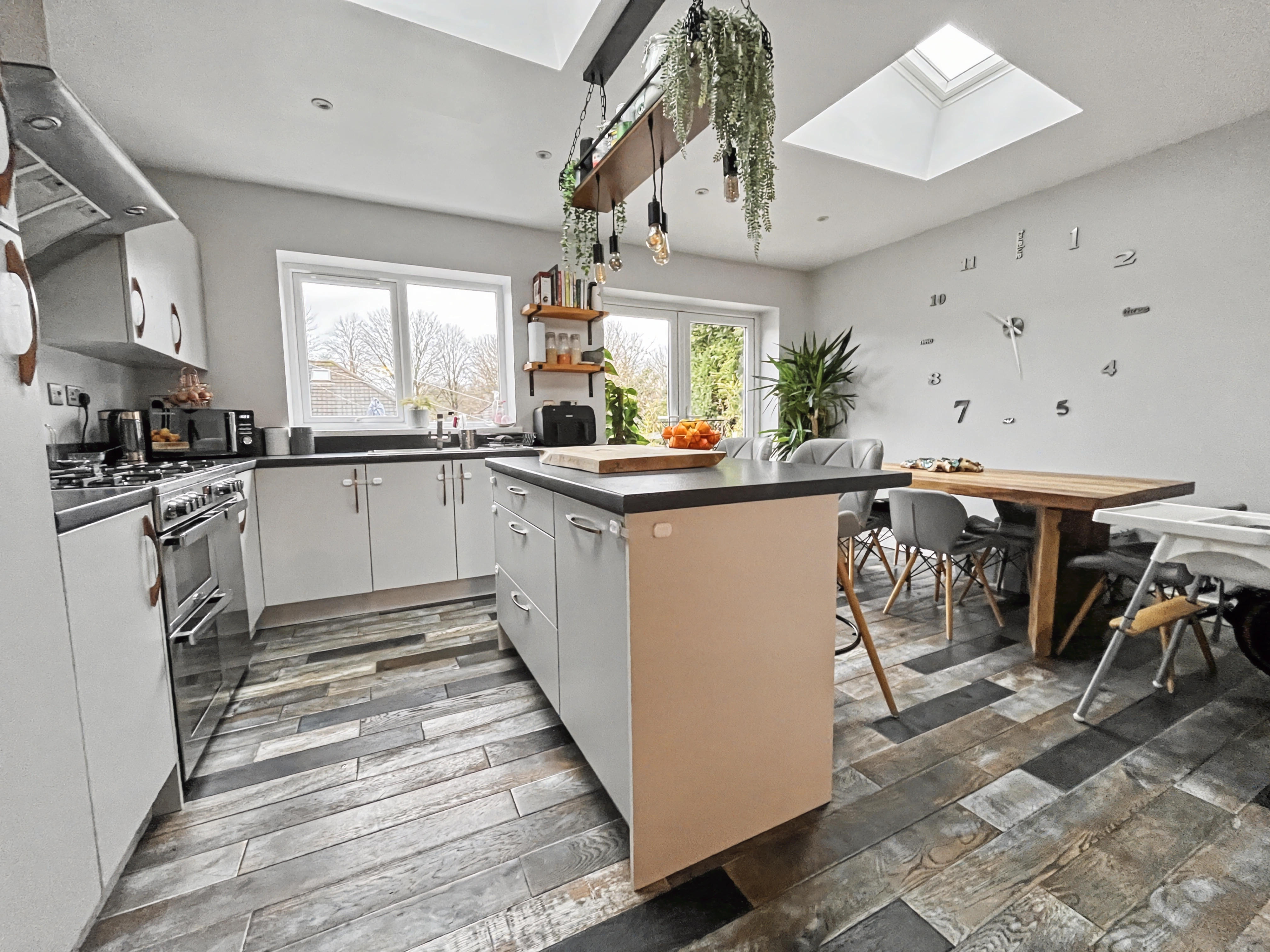 - Vaulted ceiling with feature Velux windows to Kitchen with Double opening doors to rear garden. Central island with feature light over.