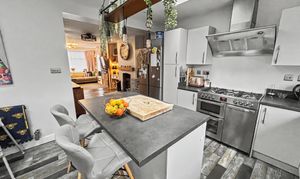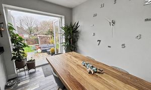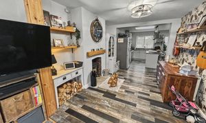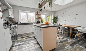 This greatly extended three bedroom semi-detached house presents a superb opportunity for families seeking a spacious and thoughtfully designed home in a highly convenient location. Upon entry, you are welcomed into a generous open plan lounge and dining room, seamlessly connecting to an impressive extended kitchen. The kitchen is a true centrepiece, boasting a striking vaulted ceiling adorned with feature Velux windows that flood the space with natural light. Double opening doors lead directly to the rear garden, creating a harmonious flow between indoor and outdoor living. A central island, enhanced by a stylish feature light, provides an ideal space for both casual dining and entertaining. The dining area is further complemented by a charming log burner, offering a cosy focal point for gatherings. Practicality is ensured with a utility room and a downstairs WC. The property benefits from gas central heating, with the system and a Baxi combi boiler replaced approx. eight years ago, offering peace of mind and efficiency. Each bedroom is well-proportioned, providing ample space for relaxation and personalisation. This freehold residence is ideally situated close to local amenities, including reputable schools, a variety of shops, and excellent transport links, making it an exceptional choice for modern family living.