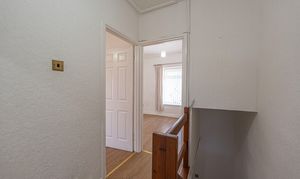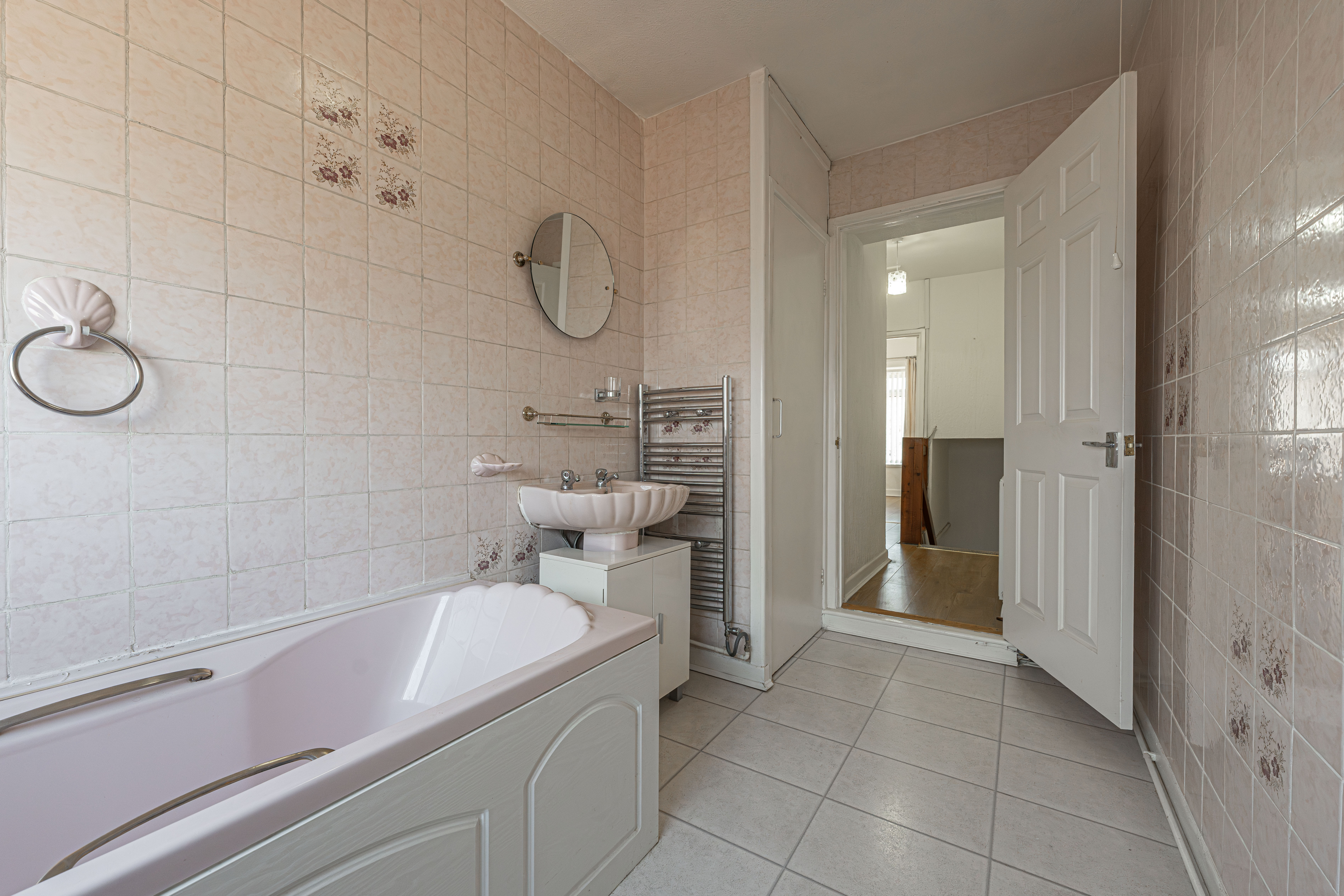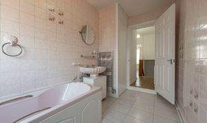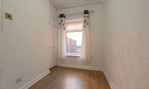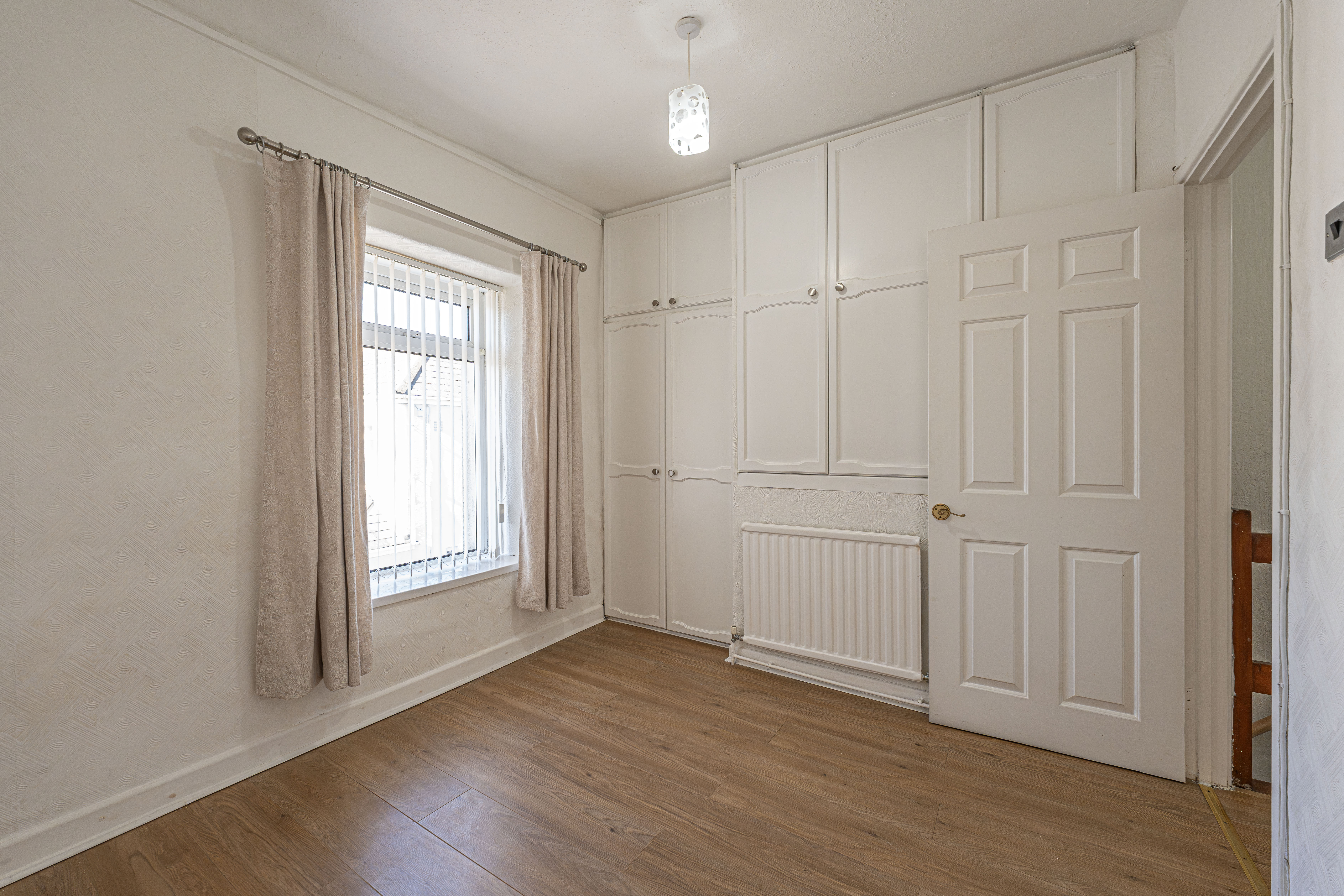 To the first floor we have the two bedrooms, one of which is a double, with the other a comfortable single. Both bedrooms offer fitted storage options, with the family bathroom also equipped with a helpful airing cupboard.
