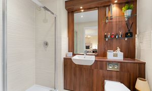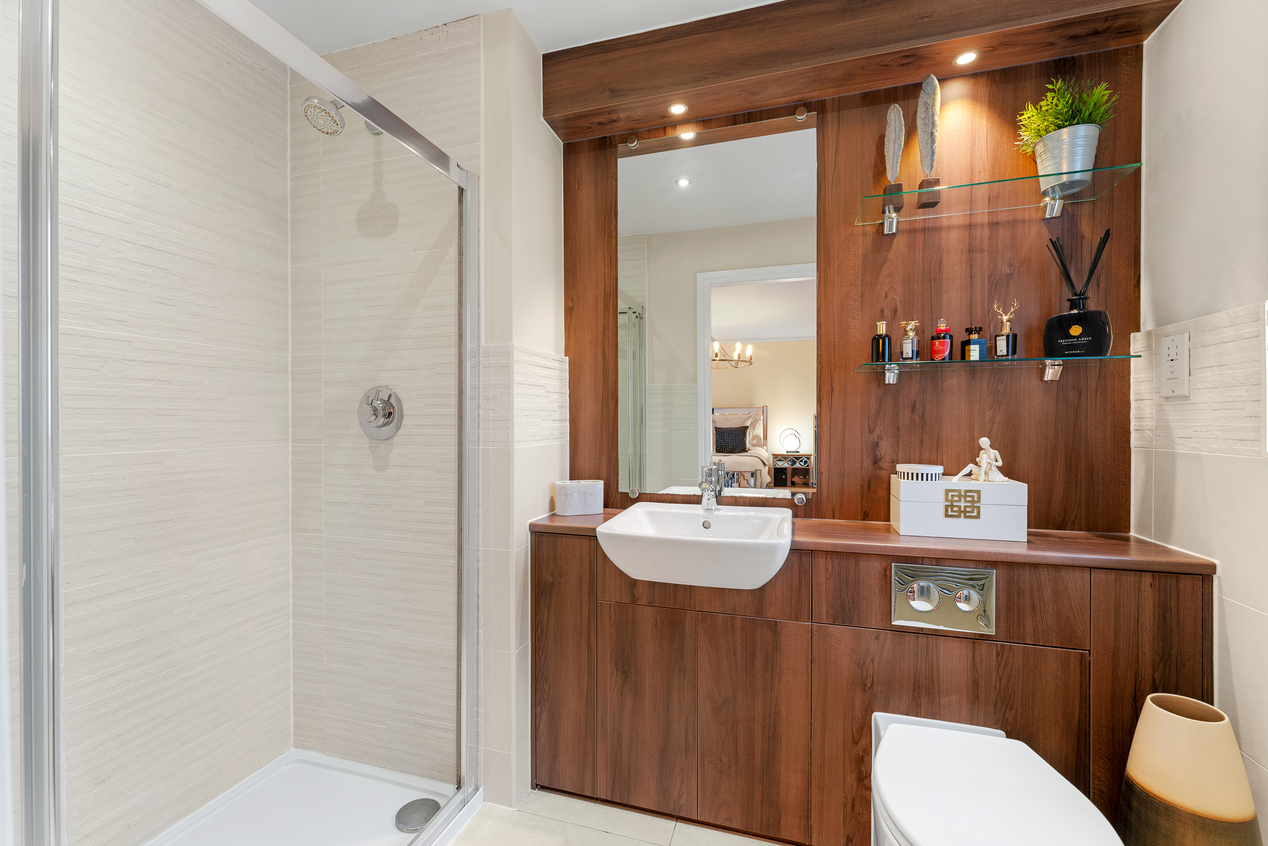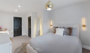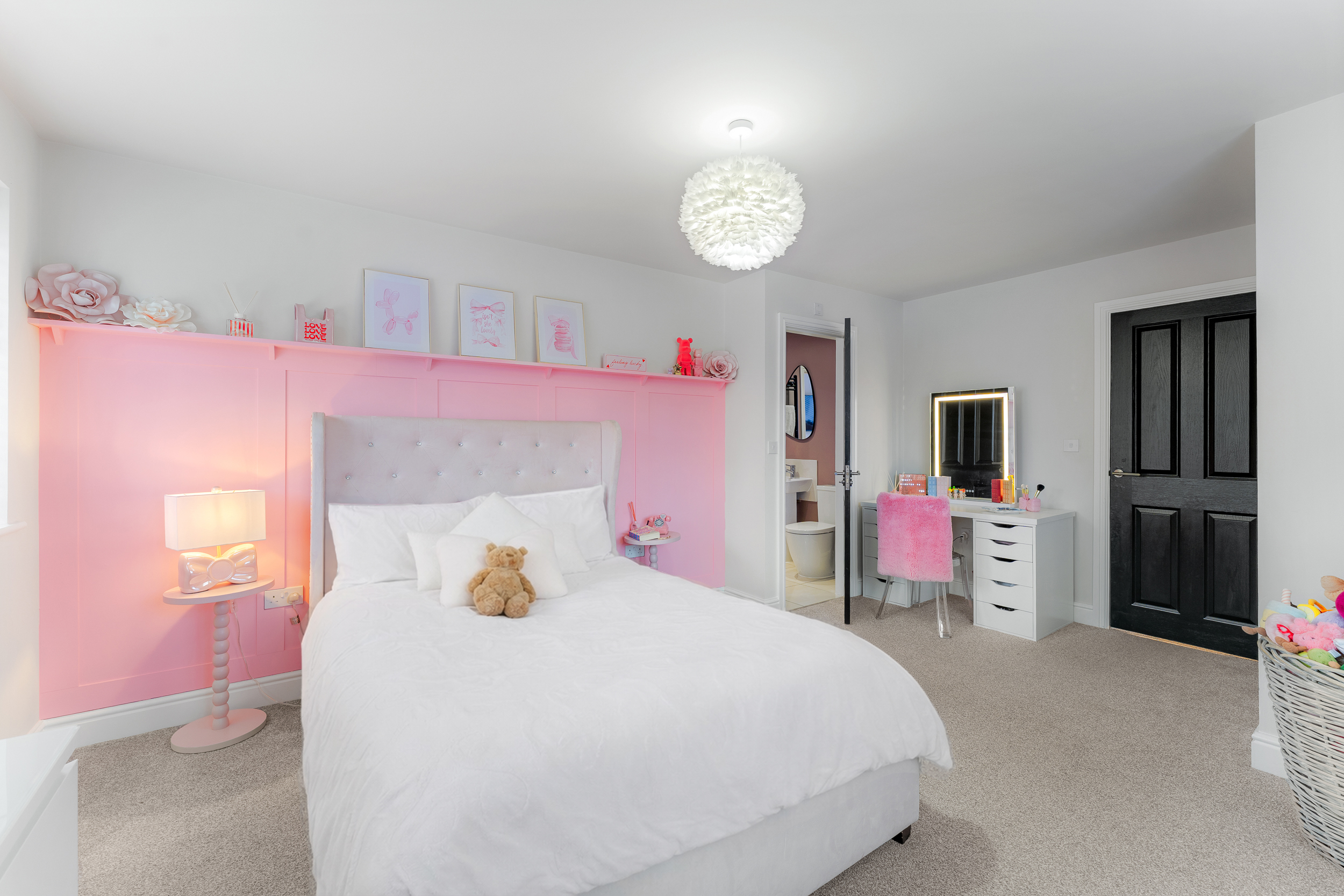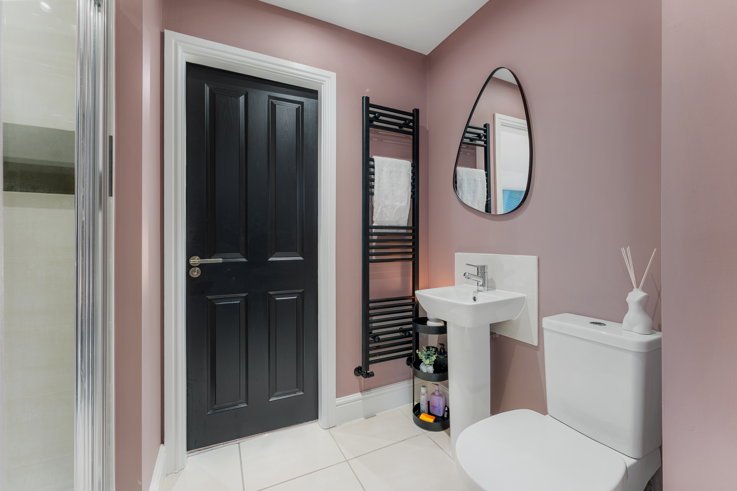 With storage ahead from the stairs, turn left into the first of the bedrooms, a spacious double with its own sleek and chic, Jack ‘n’ Jill shower room en suite.