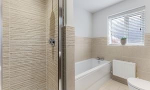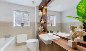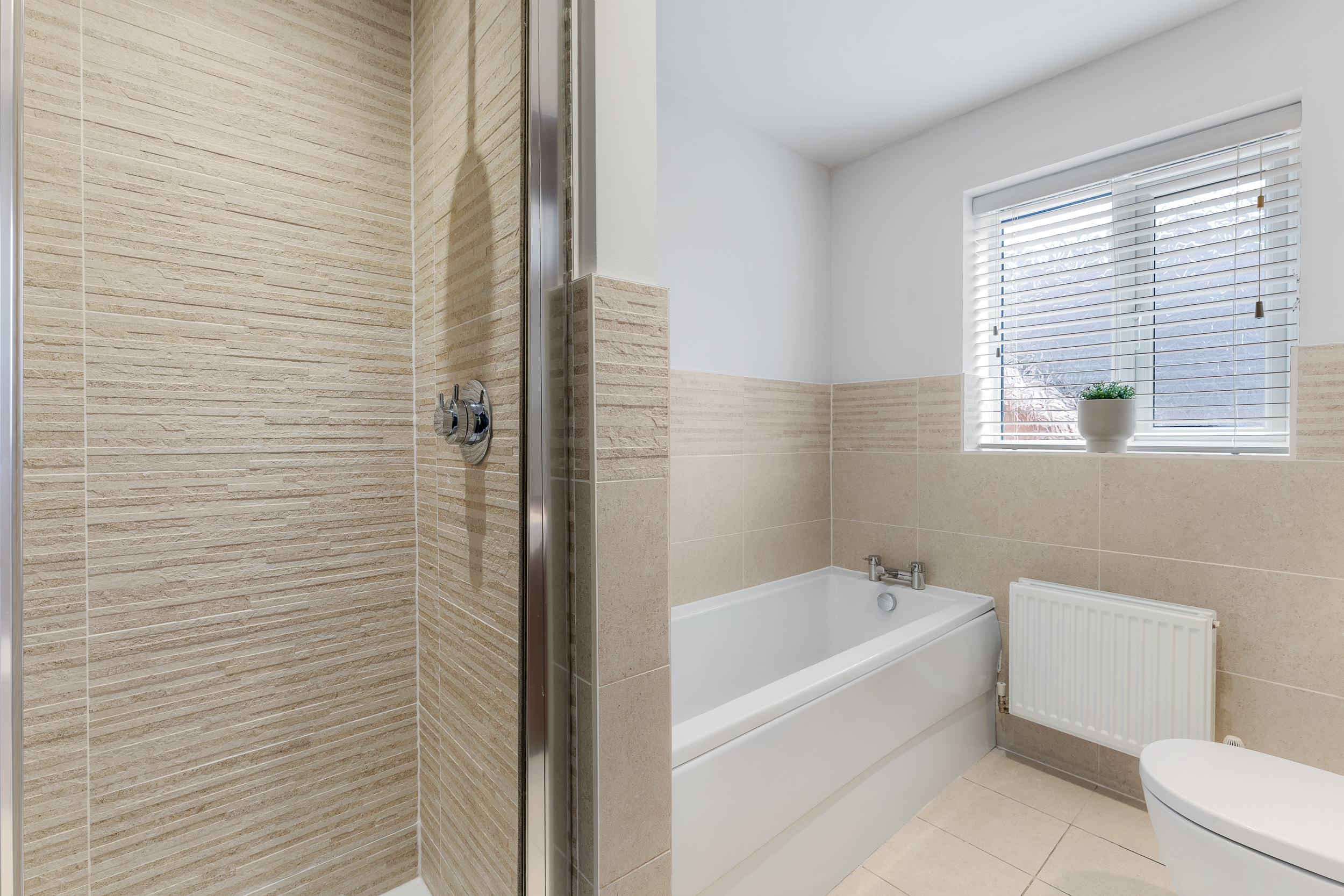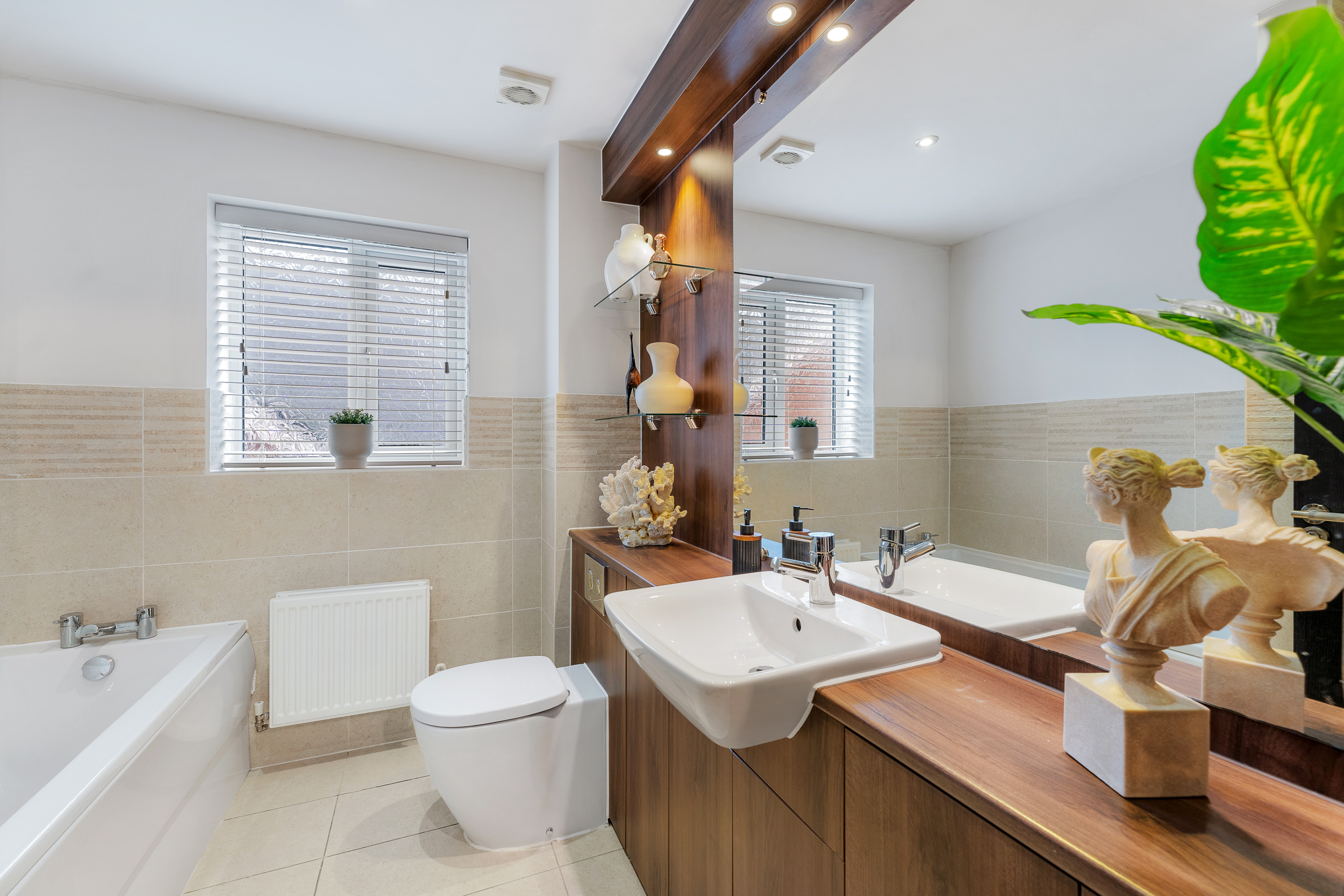 Relax and unwind in the main family bathroom, where updates have been made over the years including a newly fitted bath panel, keeping the home fresh and in step with modern tastes.