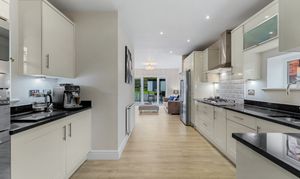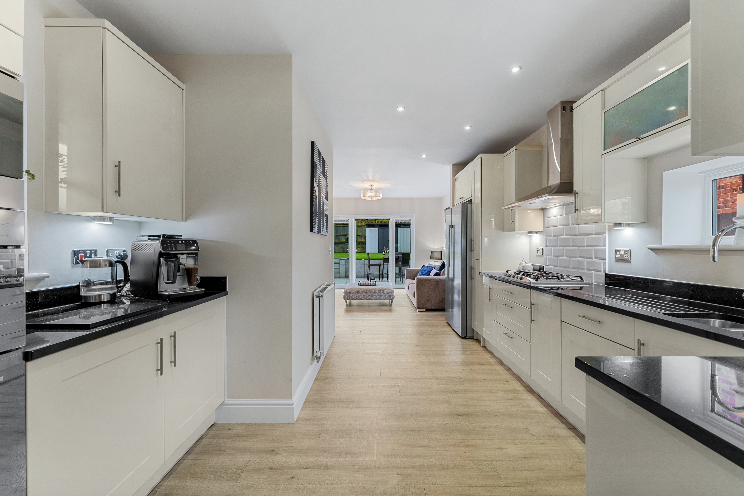 Stash coats and shoes in the cupboard directly ahead from the front door, before continuing past the stairs and into the light filled, open plan kitchen, ideal for modern family living.