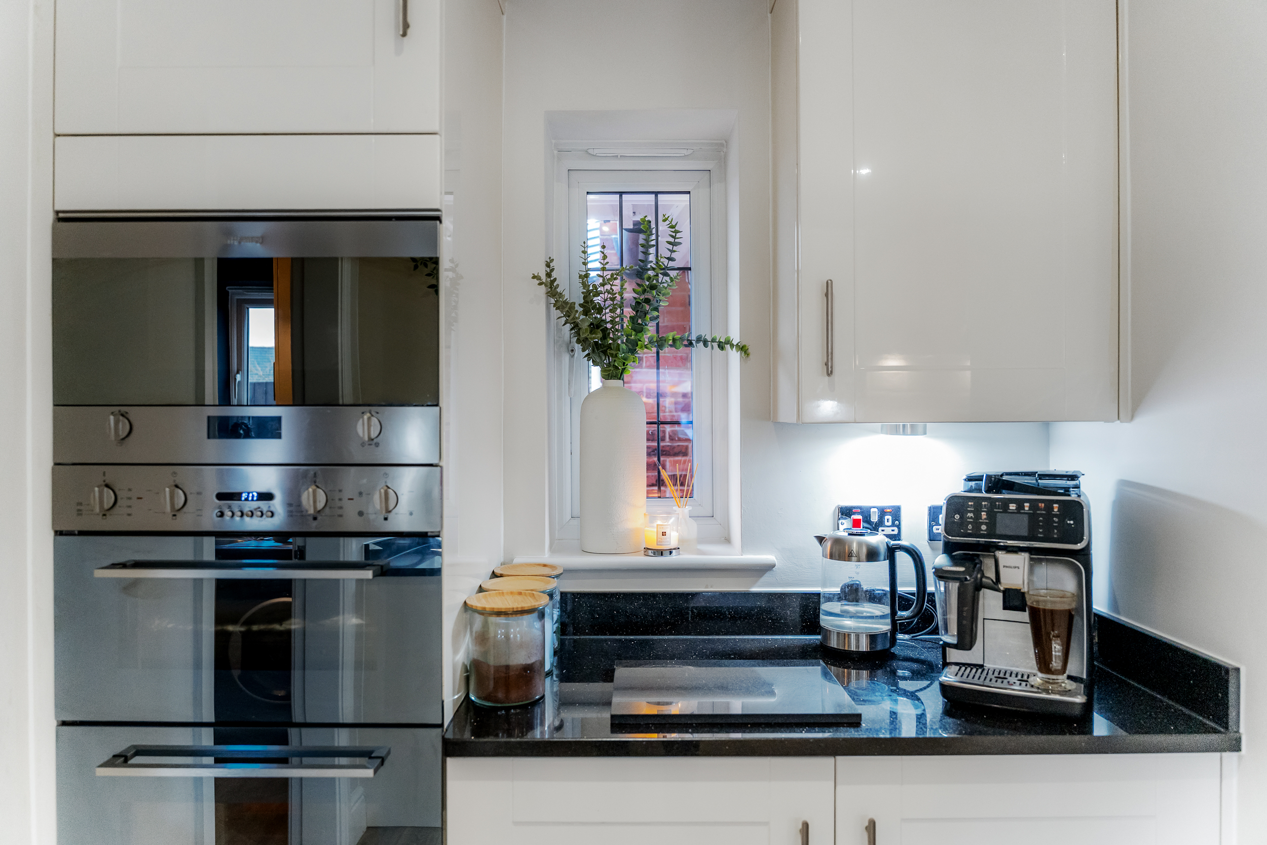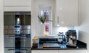 Fitted with predominantly Smeg appliances, including oven, grill and microwave, the kitchen is timelessly stylish and enduring, complemented by a recently replaced dishwasher, and with ample space for an American-style fridge freezer.