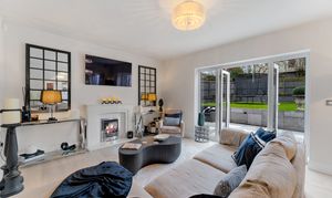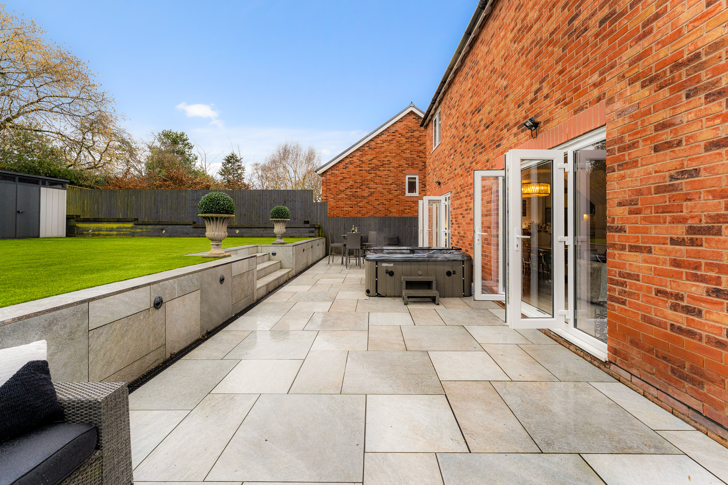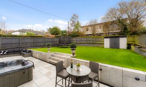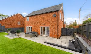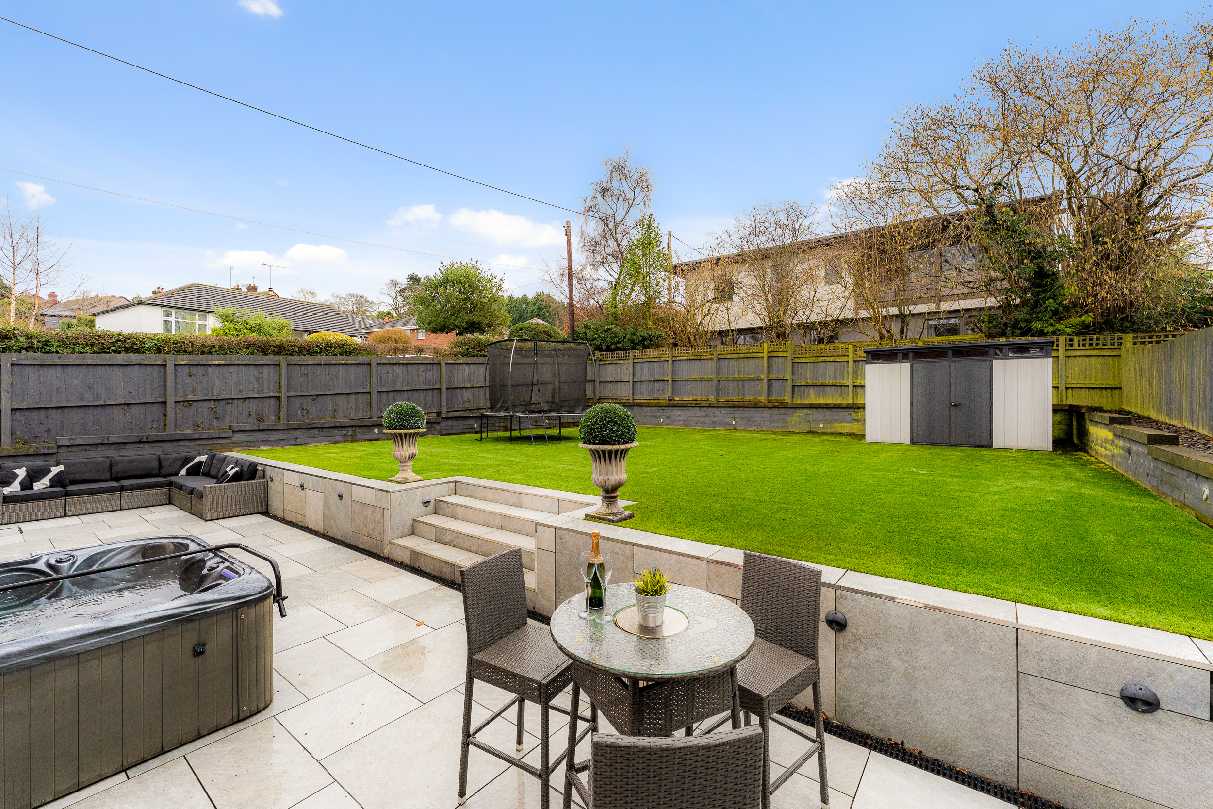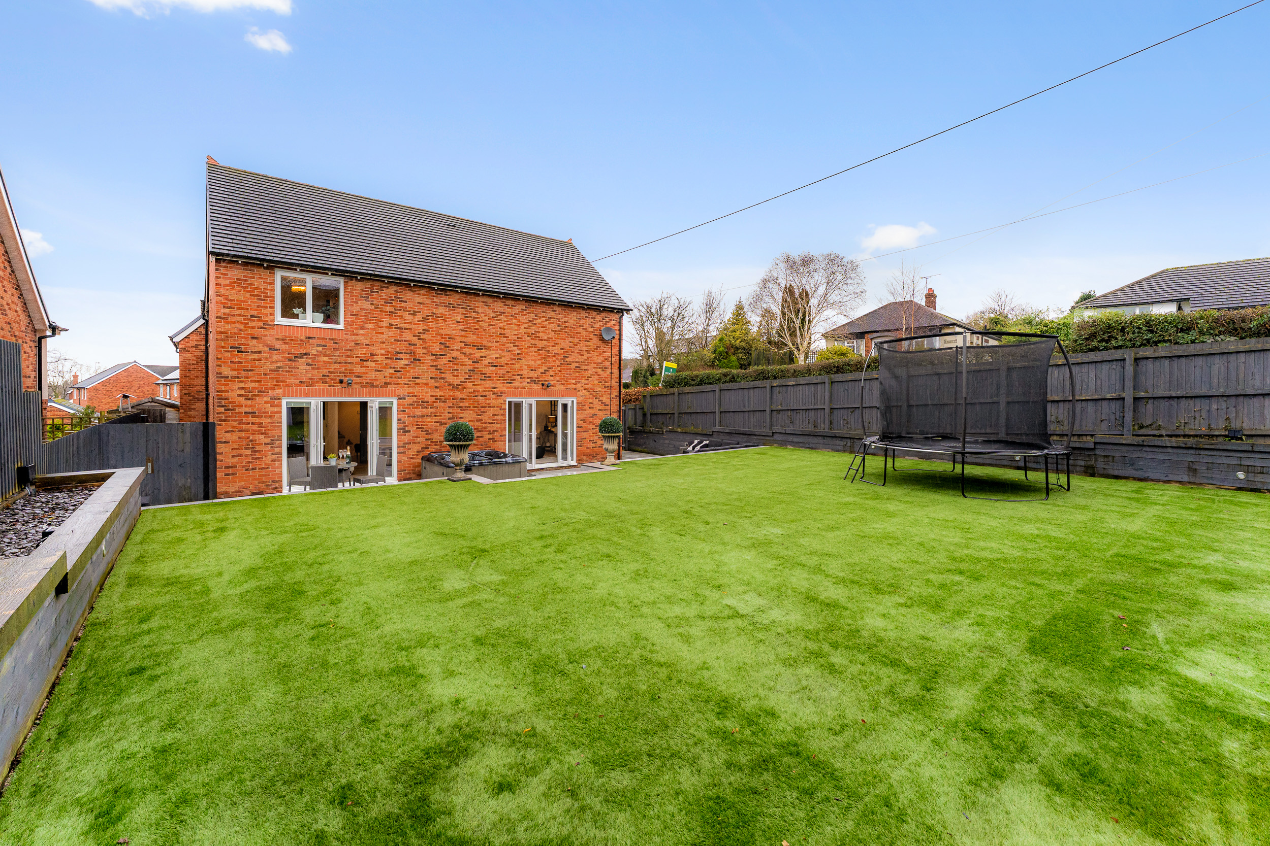 Stepping out from the kitchen-living space, a garden designed for year-round enjoyment unfolds, beginning with a broad, deep porcelain-paved patio perfect for al fresco dining, rising to a low-maintenance, two-tiered Eden laid with high-quality artificial lawn ensuring no muddy footprints even in winter. Stash away all the football nets and garden furniture in the two sheds, tucked to the rear.