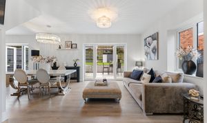 Designed around family living, the open-plan layout naturally divides into two distinct yet connected areas; a sociable seating space at one end and a more relaxed corner at the other. Whether children are settled with a film while cooking is underway, or conversations continue around the dining table, this zoned space works effortlessly, bringing families together whilst providing space for independent activities, with each area used and enjoyed throughout the day.