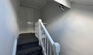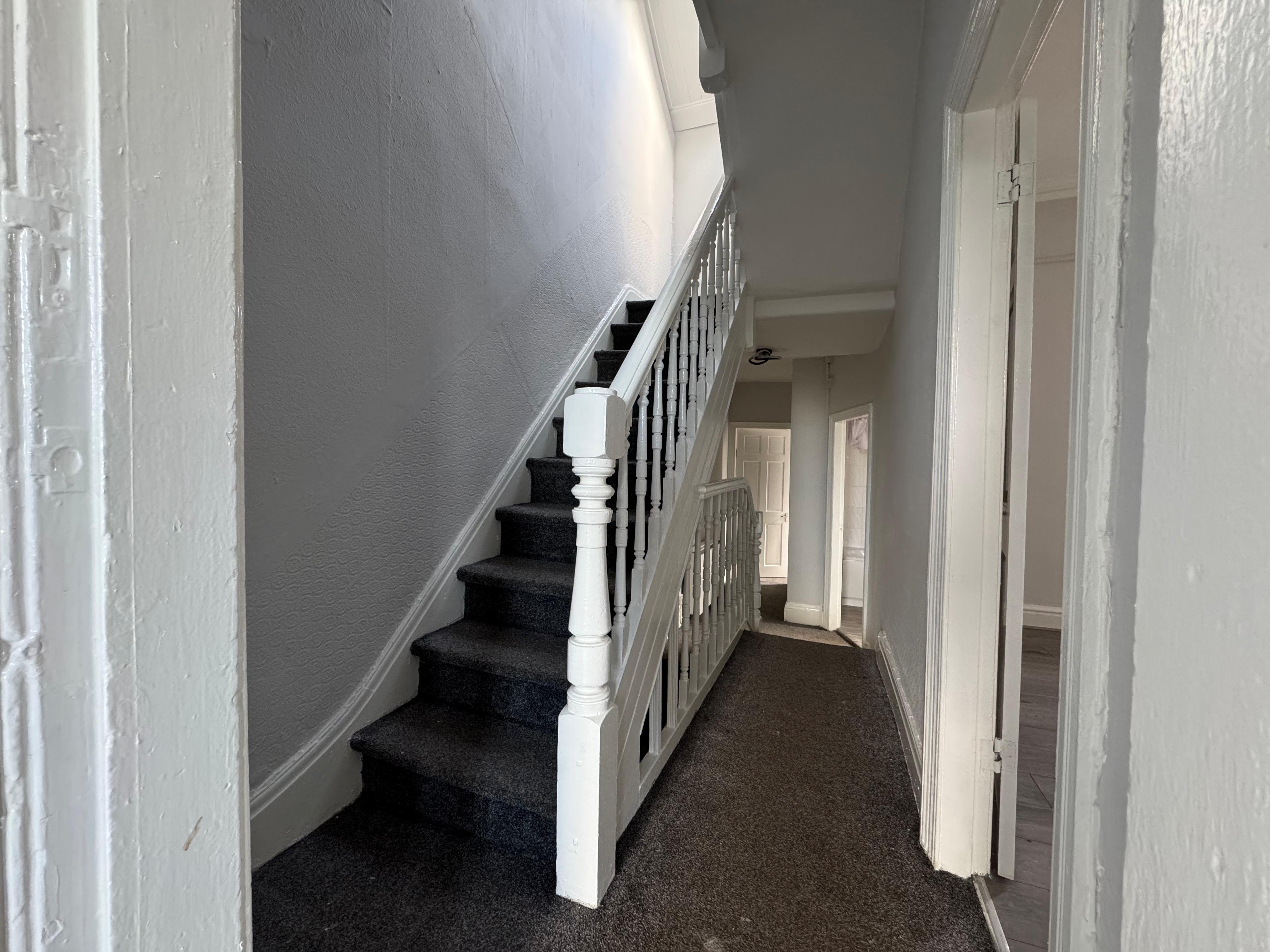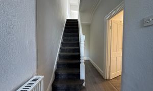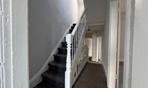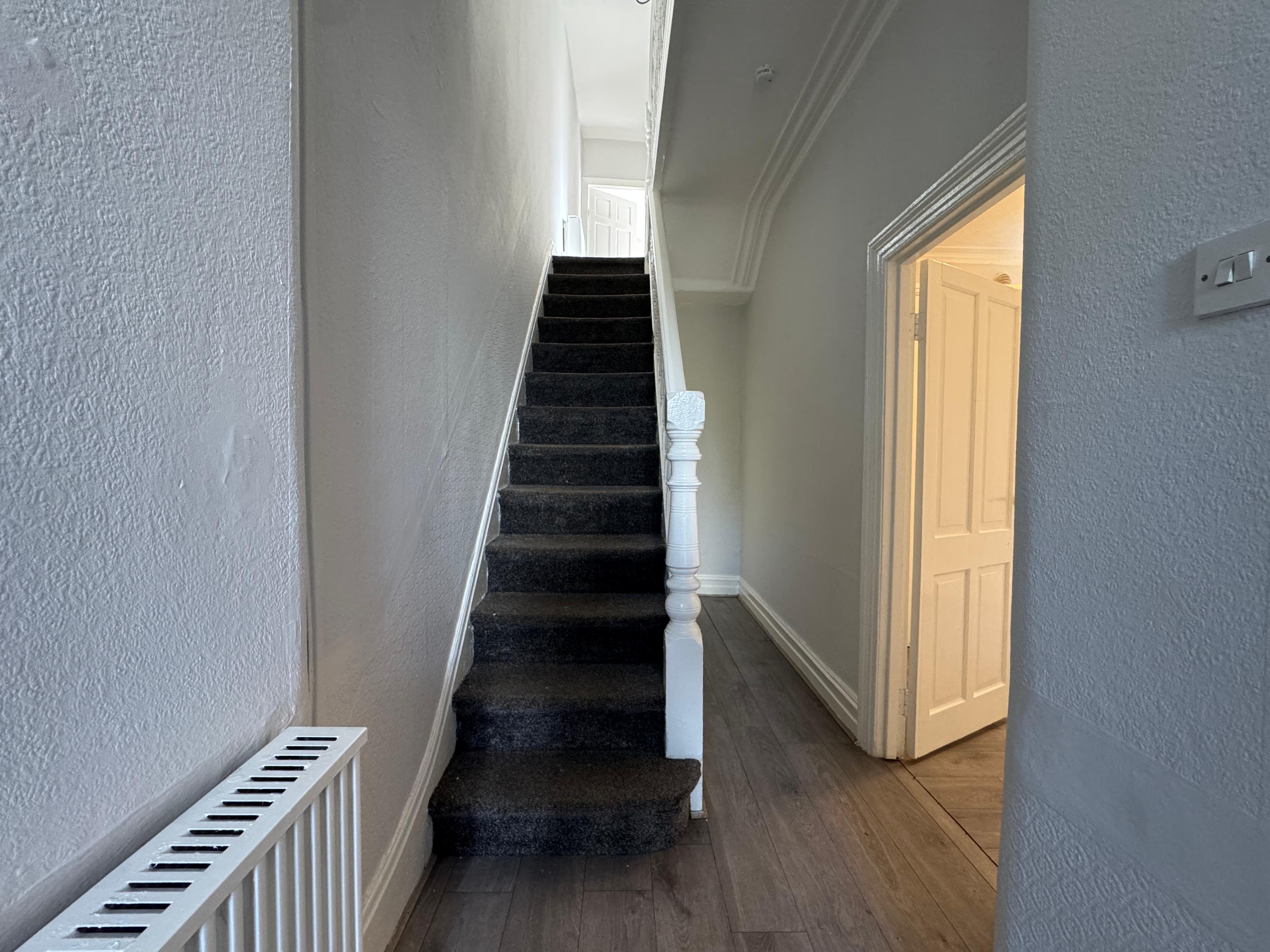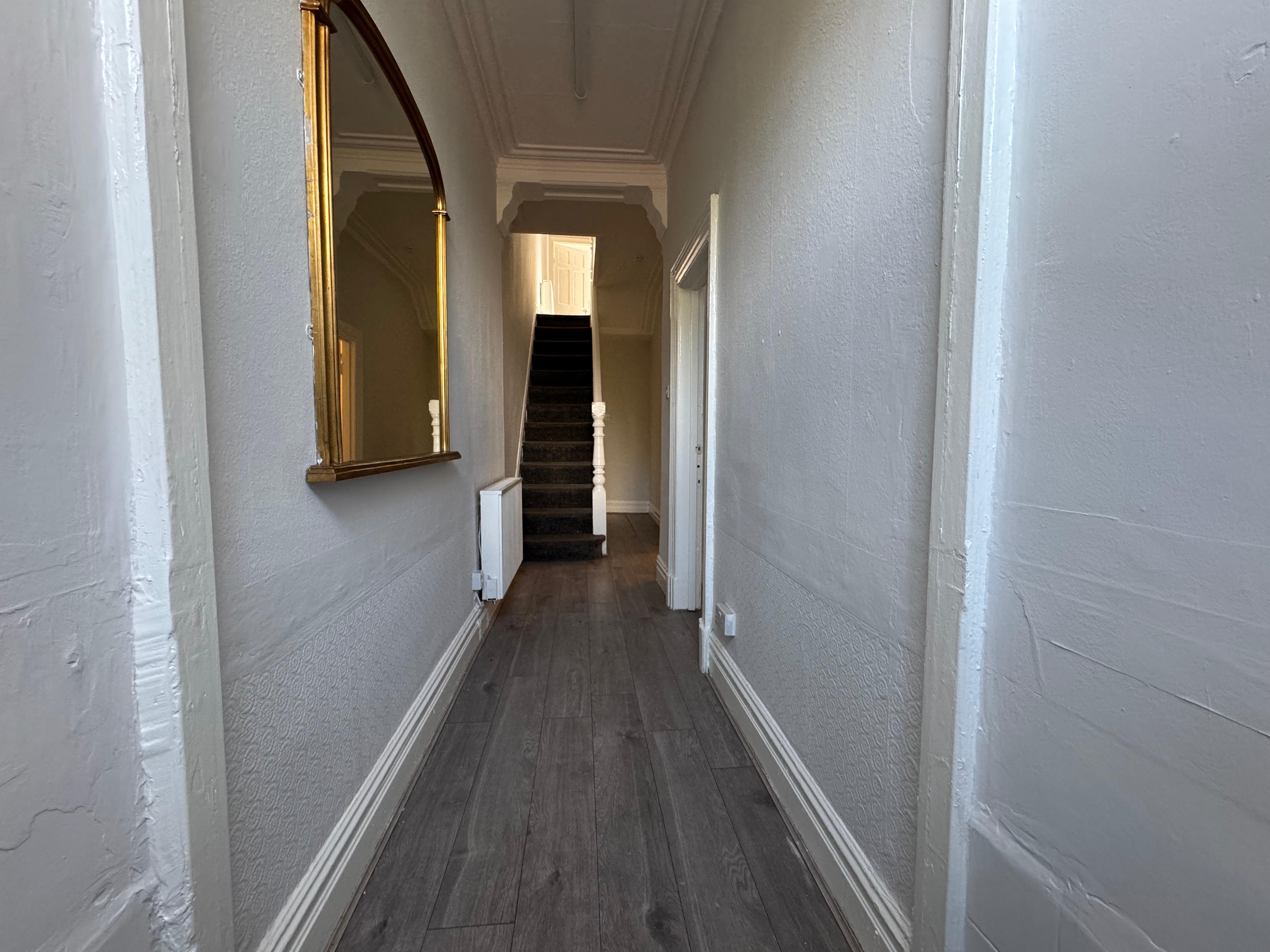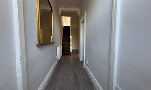 This exceptional five-bedroom, two-bathroom mid-terraced house marries period charm with contemporary style across a spacious and versatile layout. The property welcomes you with a bright hallway featuring hardwood flooring, high ceilings, and a decorative wall mirror that amplifies natural light and creates a warm first impression. Throughout, large windows and bay windows flood the principal reception room and bedrooms with natural light, while elegant period features such as ceiling roses, cornicing, and stylish fireplaces provide timeless character. The expansive living space benefits from modern wood-look and laminate flooring, neutral decor, and a blend of classic and contemporary finishes—ideal for both relaxing and entertaining.