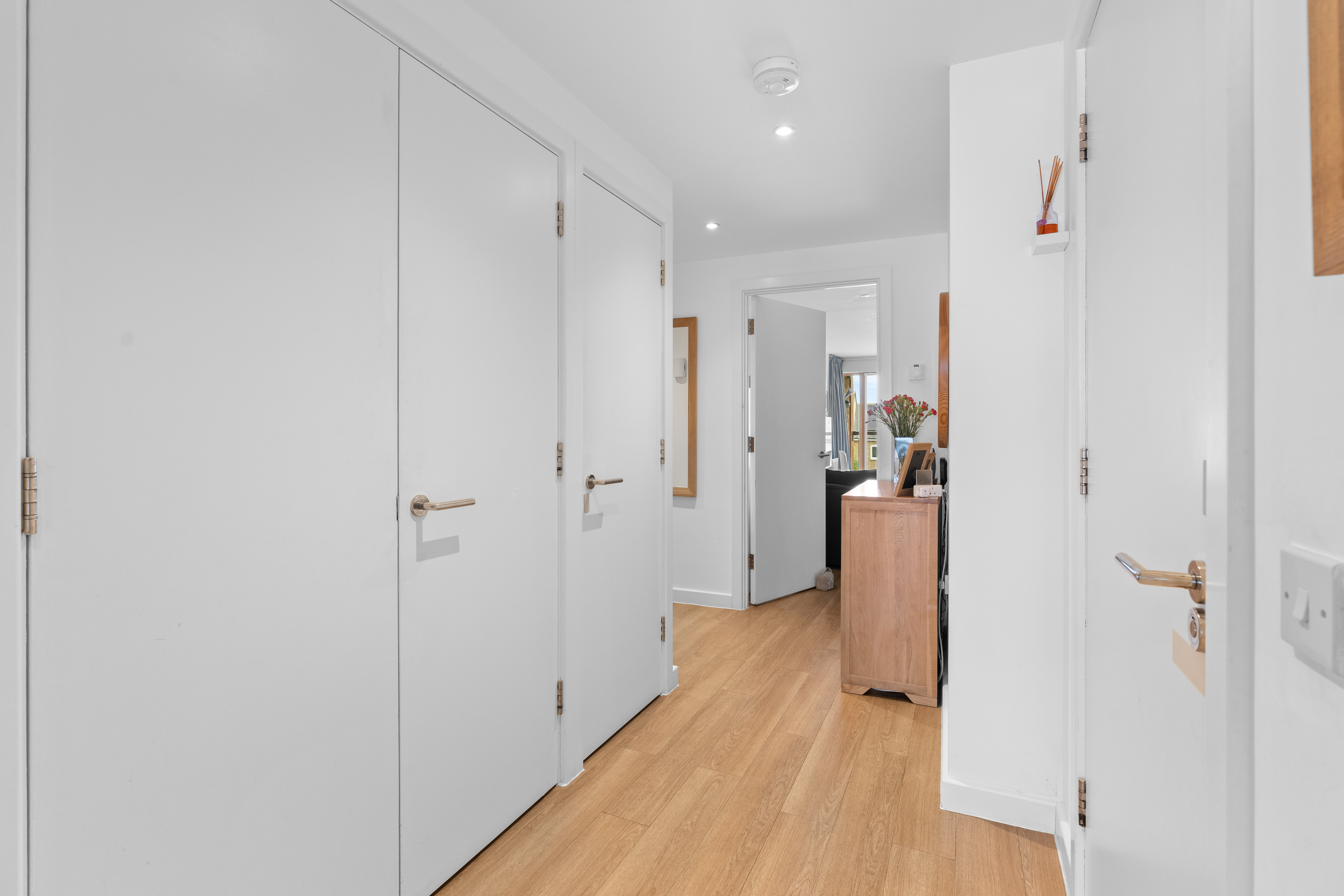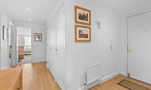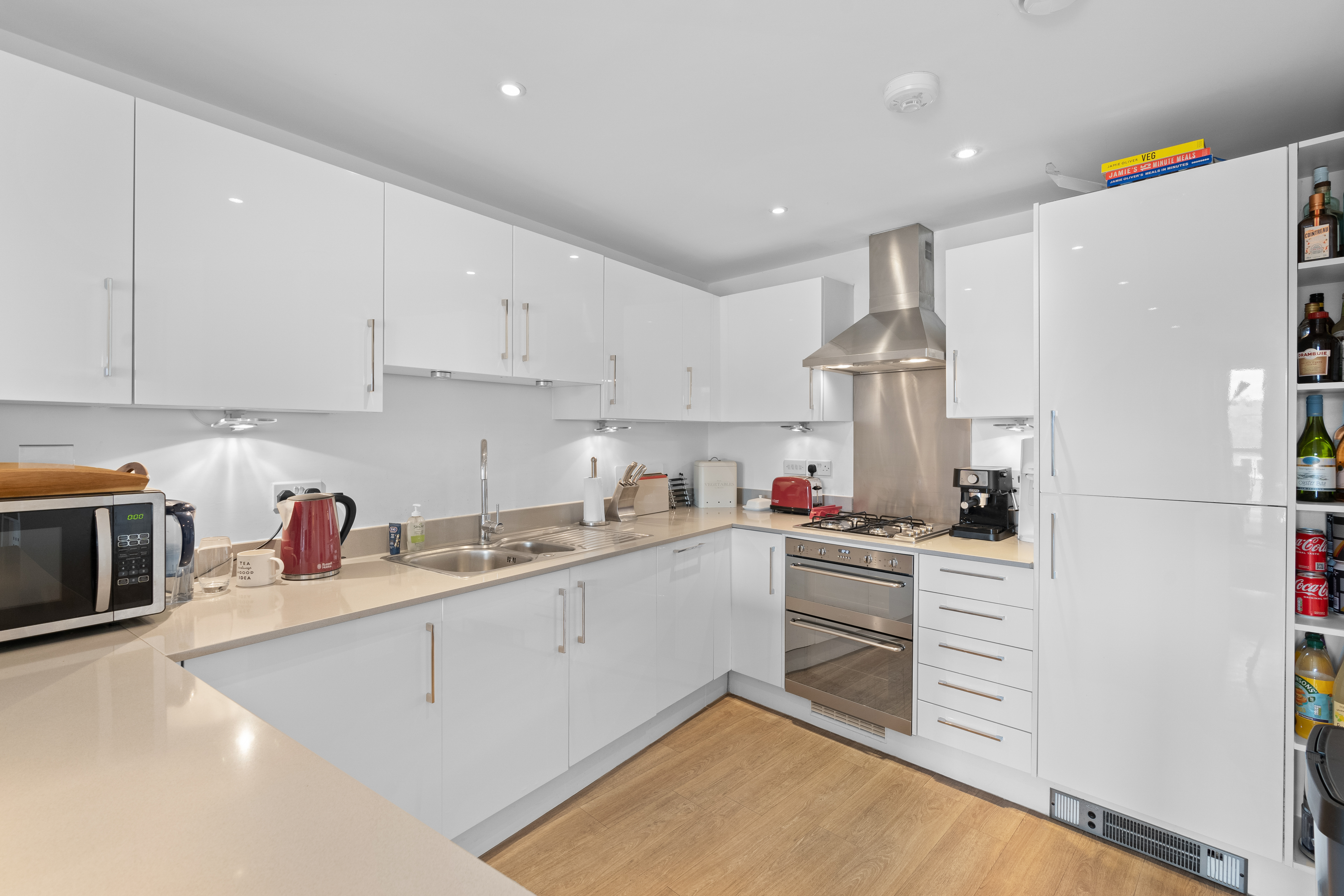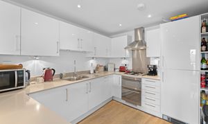 This immaculate second-floor apartment is in a small, modern and well-maintained purpose-built block in a peaceful central location just off East Road. Conveniently situated for the main railway station, Grand Arcade, the Grafton Centre, Beehive Centre and the Cambridge Retail Park, it offers both comfort and accessibility. One of the highlights is a superb shared roof terrace with unrestricted views over St Matthew's Piece and the Cambridge City skyline. A second highlight is its dual aspect, making it bright and airy. The apartment is accessed via a secure entrance hall with lift and stairs leading to each floor. Inside, the accommodation includes an entrance hall with a storage and airing cupboard. The spacious open-plan kitchen, sitting, and dining room features a sliding door leading to a private balcony. The kitchen is fitted with a stylish range of units with stone countertops and integrated SMEG appliances, including a gas hob and double electric ovens. Both bedrooms are generously sized doubles, with the master bedroom offering a built-in wardrobe and an en suite shower room. The family bedroom has even more space. Both the master, and family bathroom with a full bath and shower, are equipped with white suites, complemented by attractive tiling, mirrors, inset spotlights, and heated towel rails. Externally, the property includes a secure undercroft parking space, a bike store, and a small lawned area. The communal entrance halls are bright and well-maintained and monitored by a CCTV system, which also covers the parking area and bike store.