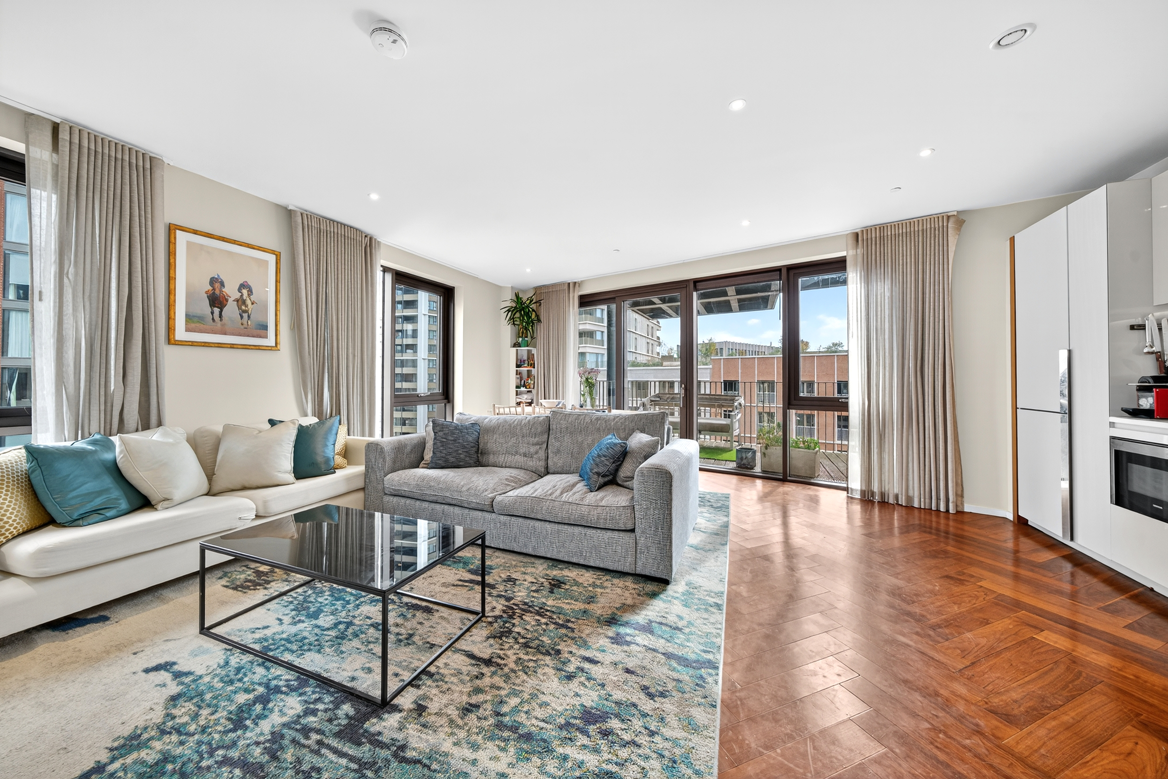 A South-East facing, dual-aspect apartment of 941 square foot, with an additional 214 square foot balcony and secure underground parking is available now in the incredible Embassy Gardens, SW8.