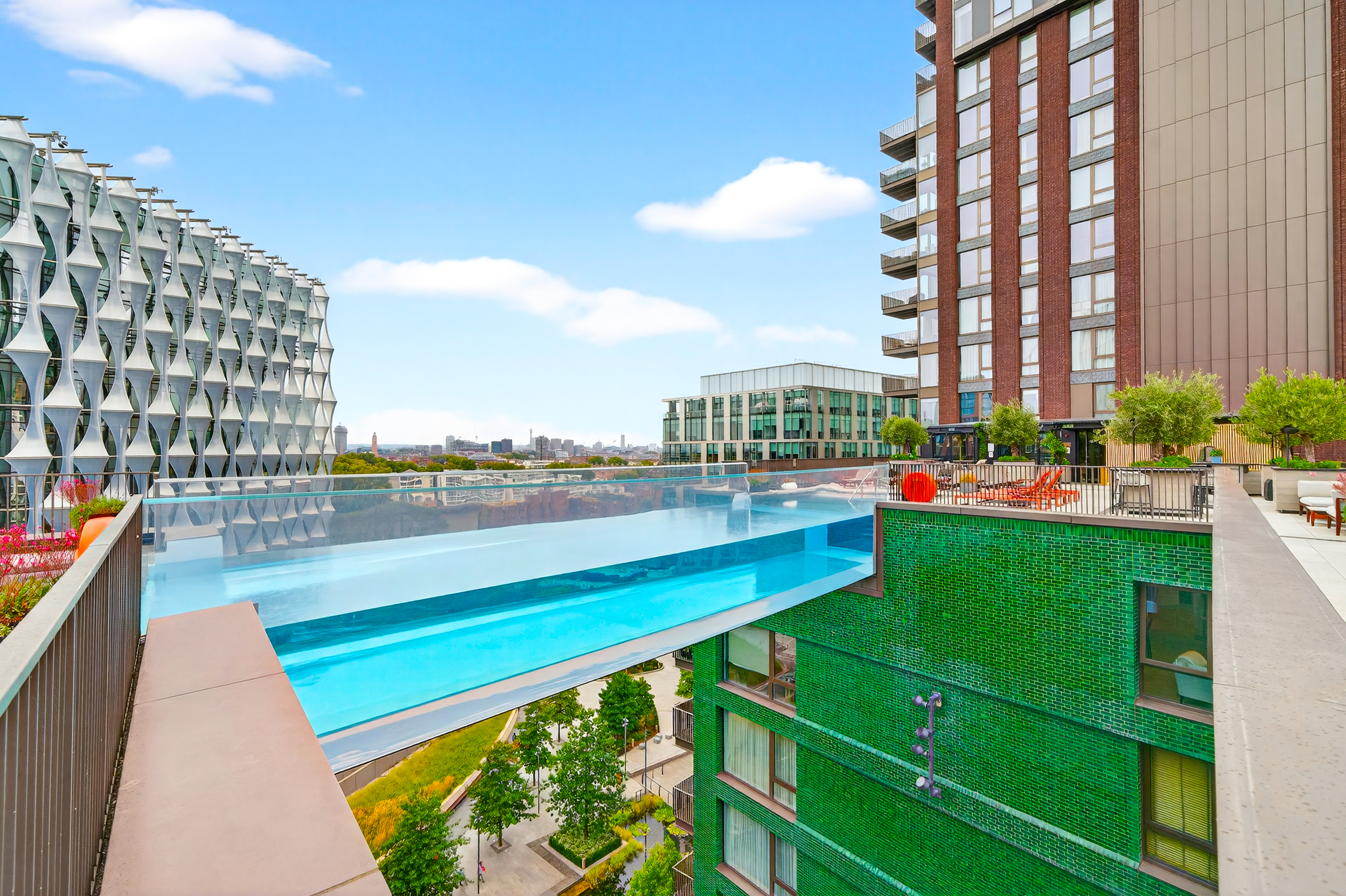 Residents of Embassy Gardens have exclusive use of the incredible Sky Pool and a vast array of leisure facilities including an additional indoor swimming pool, sauna, jacuzzi, two fully equipped gyms, private cinema, numerous meeting rooms, a business suite, private lounge perfect for ‘working from home’ and a 24-hour concierge. In addition to this, the development is home to an increasing mix of restaurants, bars and independent boutiques giving it the charm and character of a village whilst offering the buzz that accompanies City living.