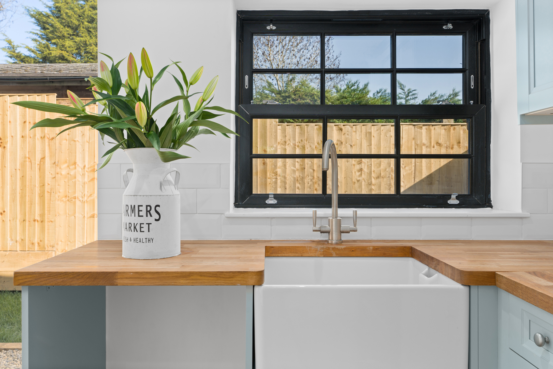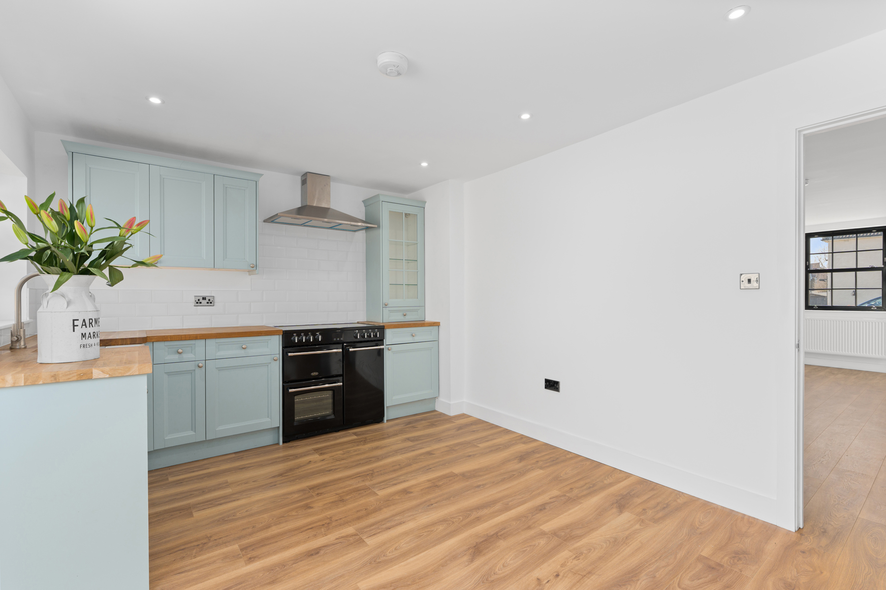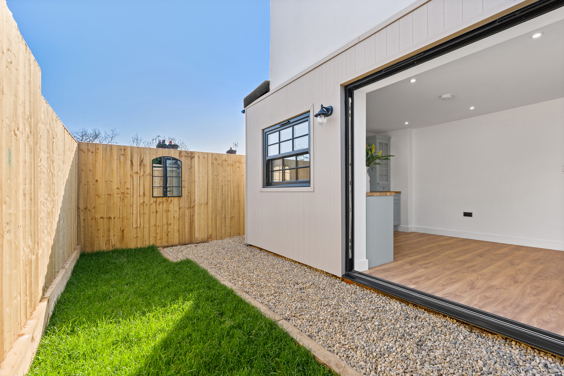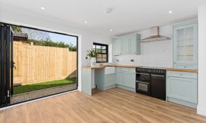Completely refurbished inside and out - the current owners have done a superb job in enhancing this home’s beauty. With its smart landscaped exterior, step inside to find much of the same - a beautifully presented home, filled with neutral interiors and stylish choices. Awash with light the front lounge is a lovely spot to host the squishiest of sofas, leading through to the kitchen with its sliding bifolds onto the garden beyond. Completely fresh and inviting, the kitchen showcases gorgeous duck egg blue cabinetry with a butler sink. We also love the choice of sash windows across the home - a timeless addition brought completely up-to-date. Completing the ground floor is a WC. Upstairs find two double bedrooms with their gorgeous ceiling roses and plush carpet underfoot. The luxe family shower room completes the interior - full of personality and monochrome styling.