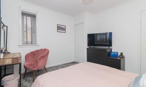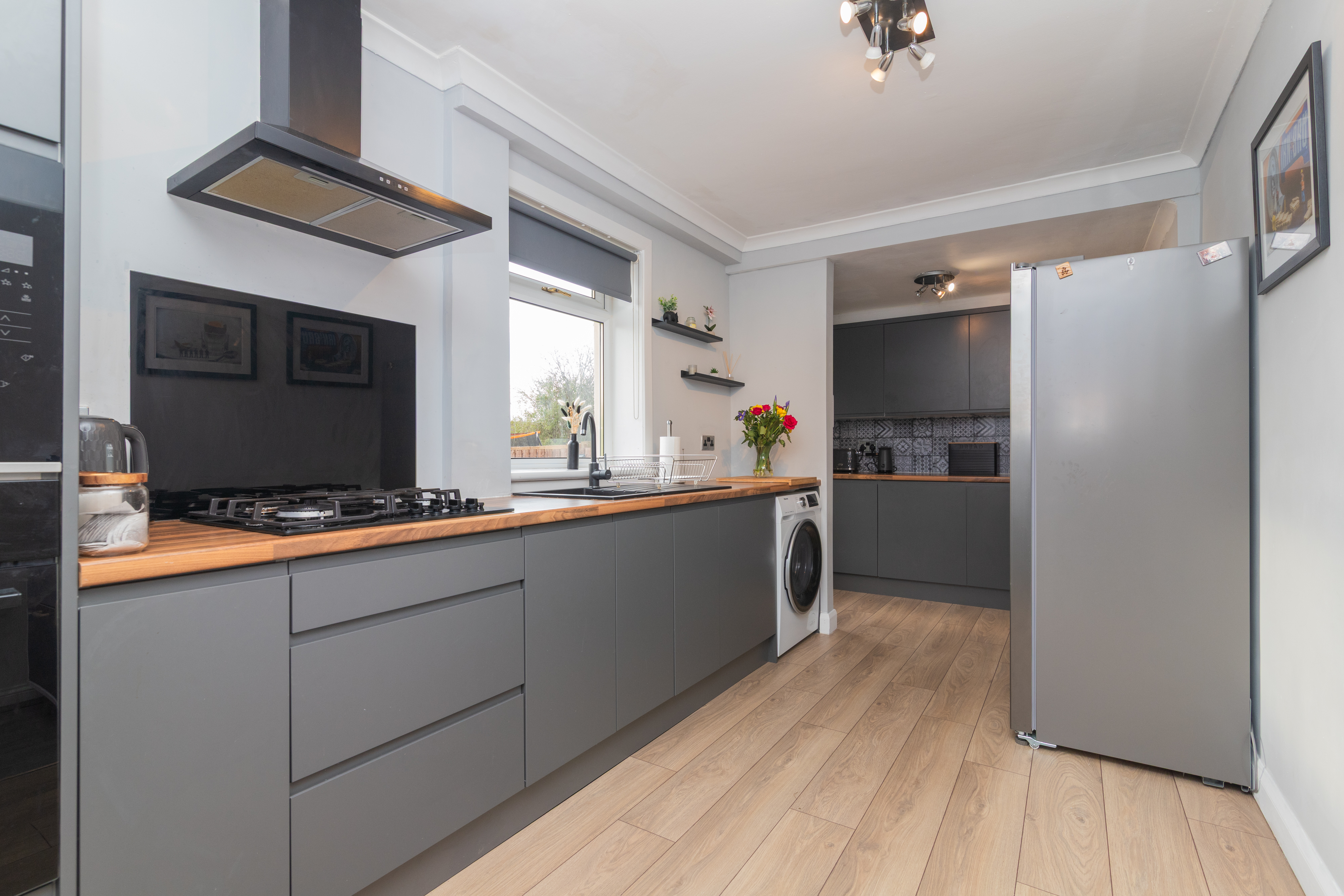 Upstairs, the three generous double bedrooms provide ample space for freestanding furniture, with Bedroom 1 featuring sleek fitted wardrobes with contemporary sliding mirror doors. The luxurious, fully tiled bathroom is beautifully finished, complete with a mains shower over the bath.