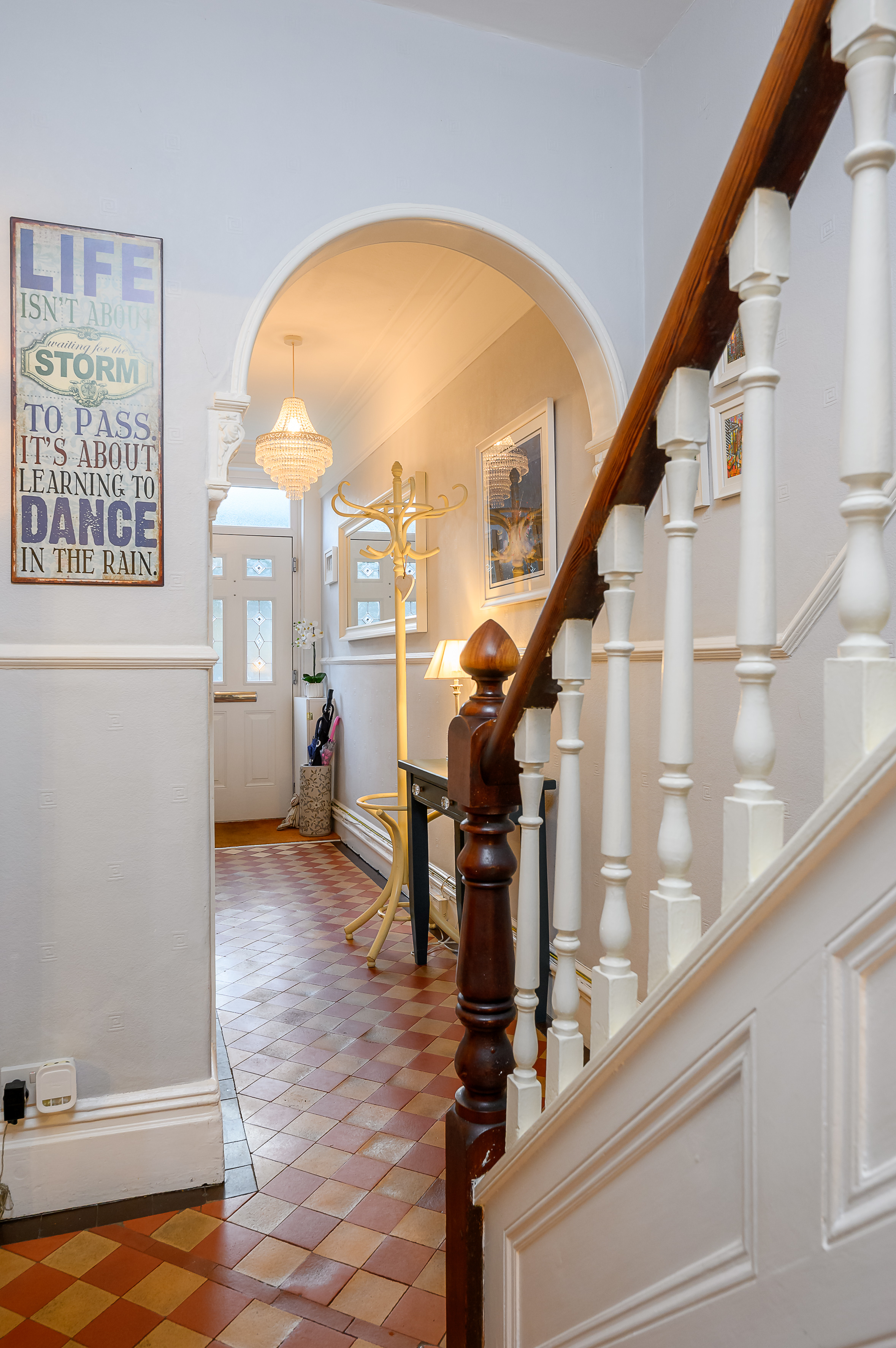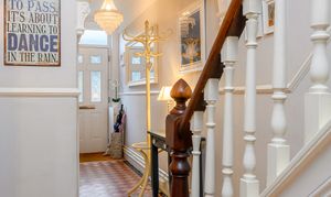 The entrance hall showcases original Victorian tiled flooring, decorative corbels, deep skirting boards, and both picture and dado rails. The hall provides access to the entirety of the ground floor and immediately sets the tone for the quality and character found throughout the home.