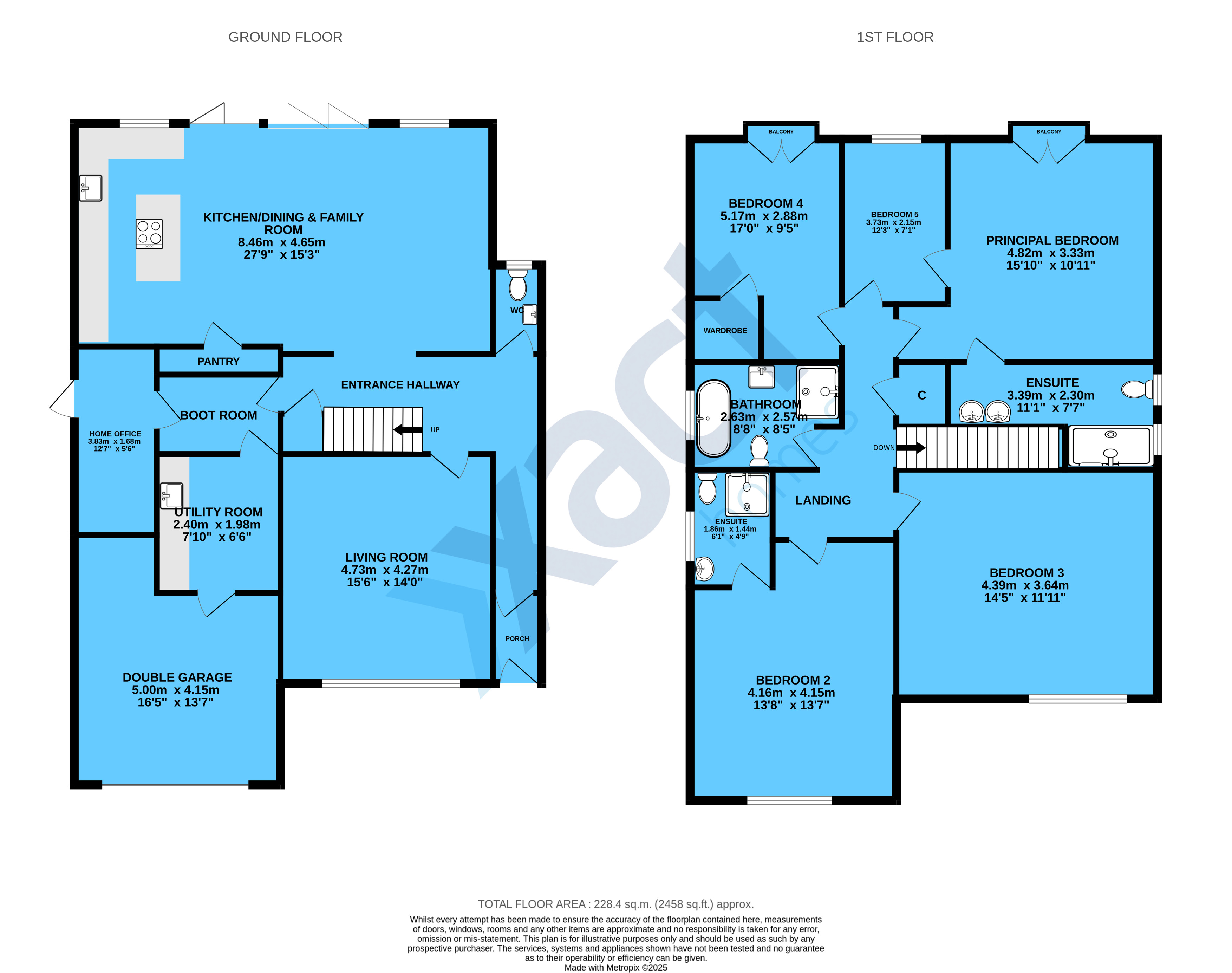 For those who work from home, a versatile home office with a practical utility room that leads to the double garage with an electric door provides a convenient workspace. Upstairs, you will find five impressive bedrooms, all of which are spacious doubles. The principal bedroom boasts a large en-suite and a Juliet balcony overlooking the beautifully maintained rear garden.