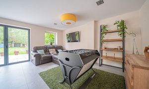 Outside, the property features a beautifully maintained rear garden, complete with a large patio seating area, a hot tub for relaxation, and a garden room. This is the ideal space for hosting gatherings or simply enjoying some peace and tranquillity in your own private oasis.