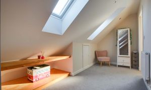 This useful space includes two double-glazed skylight windows, under-eaves storage, a built-in wardrobe, spotlighting and a radiator.