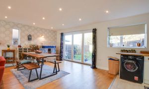 Set within Wigston and close to Wigston centre, this detached home offers flexible accommodation across three floors. The ground floor has a welcoming entrance hall leading into a bright open-plan lounge, dining and kitchen space. Large windows, bi-folding doors and oak effect flooring with underfloor heating create a warm and inviting area for everyday living. The kitchen is arranged with gloss units, oak effect work surfaces, a breakfast bar and integrated appliances, with natural light from rear-facing windows.