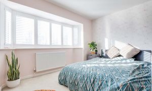 This bedroom has a double-glazed window to the rear with feature shutters and a radiator.