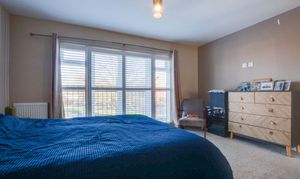 A front-facing double-glazed window and an additional side window, both with feature shutters, bring good natural light into the room. There is also a television point and radiator.