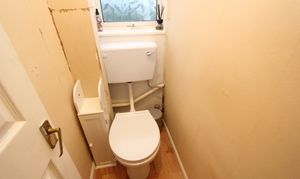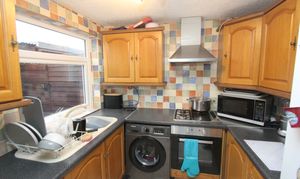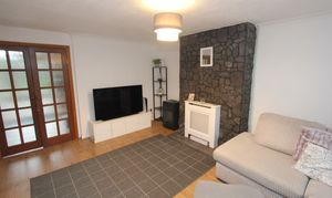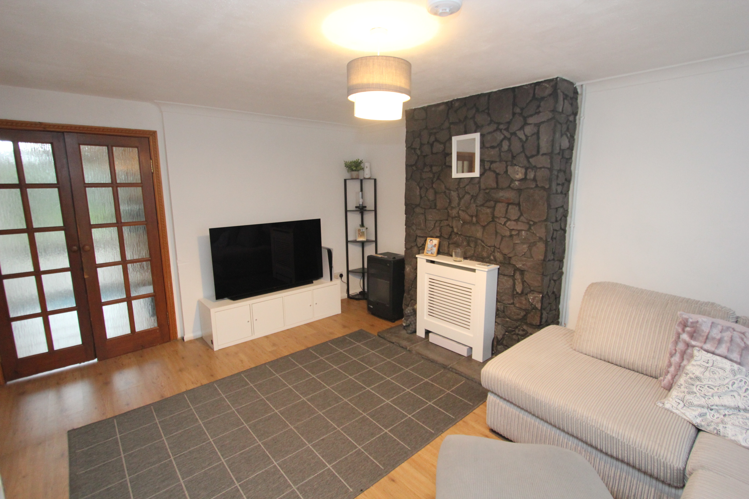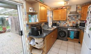 UPVC window to rear. Patio doors to rear. Under stairs cupboard. Ceramic floor tiles. Radiator. Fully fitted kitchen comprising eye level units base units with drawers and work surfaces over. Space for white goods. Integrated gas hob with oven. One and a half bowl sink with mixer tap.