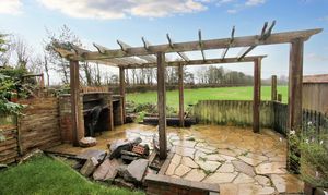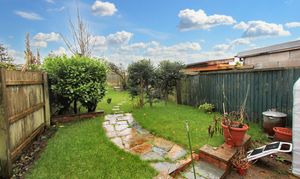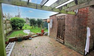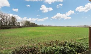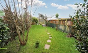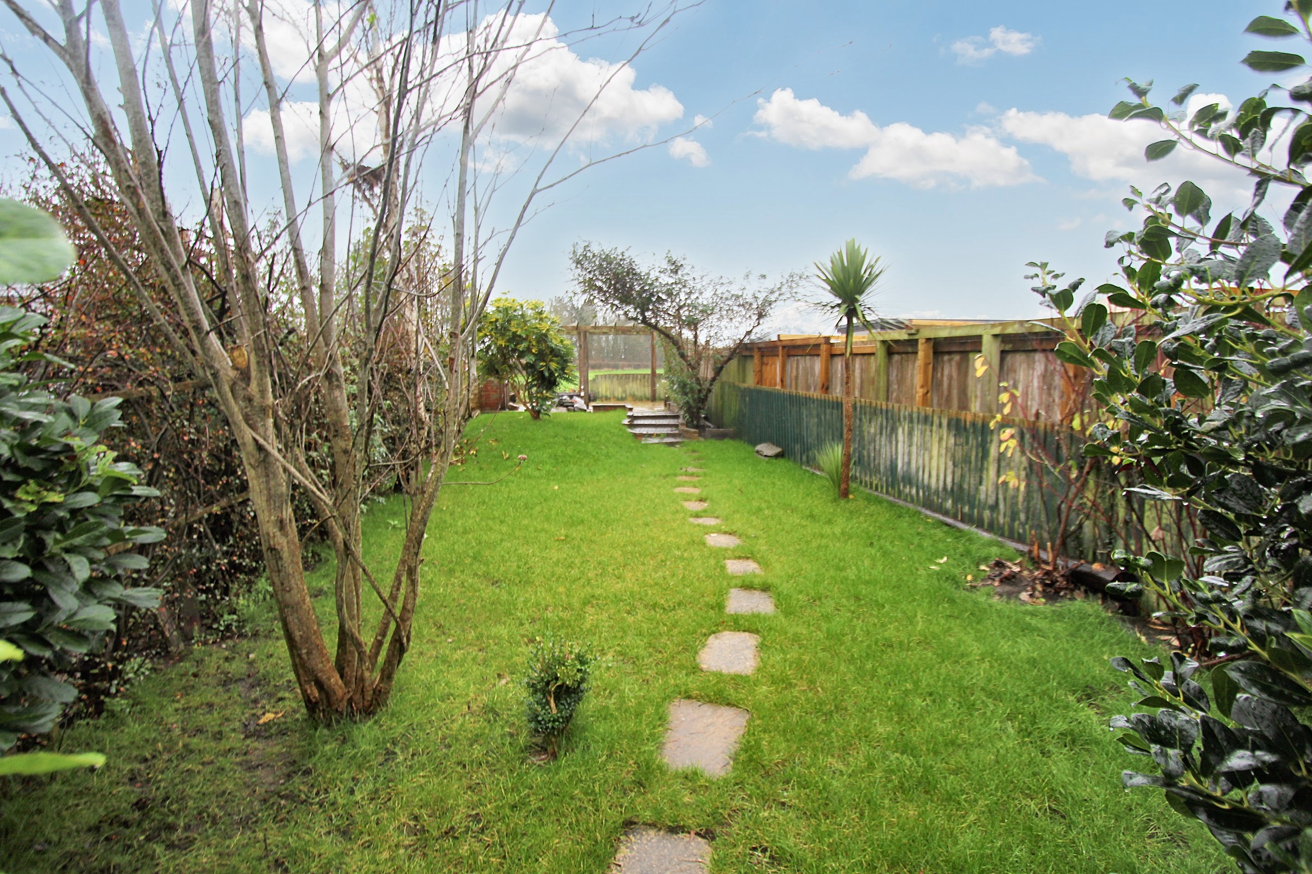 Rear garden - a private sunny and impressive garden laid to lawn with block paviour area for seating etc. Shed. Splendid aspect backing on to open green agricultural land.