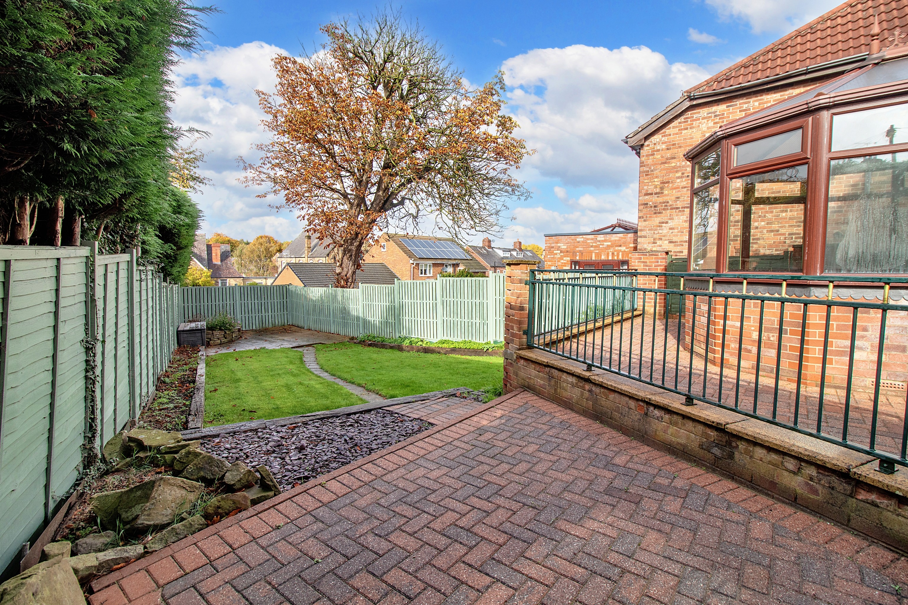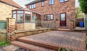 - Enclosed rear garden and raised patio areas