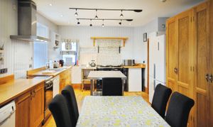 Step inside to discover a well-maintained residence featuring 5 bathrooms, including three en-suites, ensuring utmost comfort and privacy for residents and guests alike. The heart of the home lies in the expansive kitchen, equipped with an AGA stove and bespoke hand-crafted cabinetry, creating a hub where culinary delights come to life.