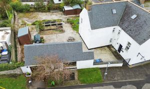 - Large area of south-facing garden ground with timber garage, sheds and parking for a large number of vehicles