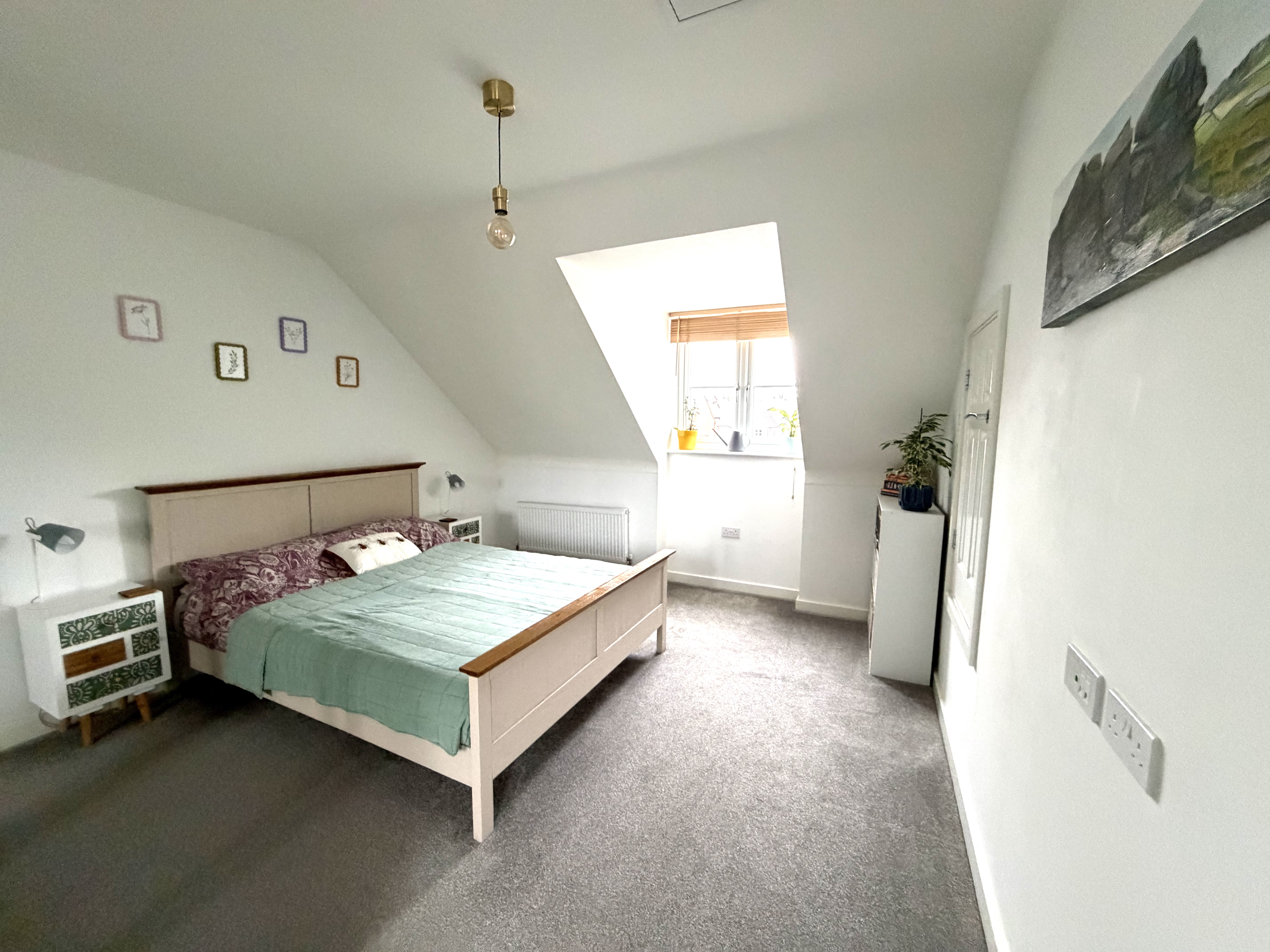 A very large master bedroom with sliding mirrored wardrobes and space for king size bed. With fabulous reading nook or dressing area, and large storage space in the eaves.
